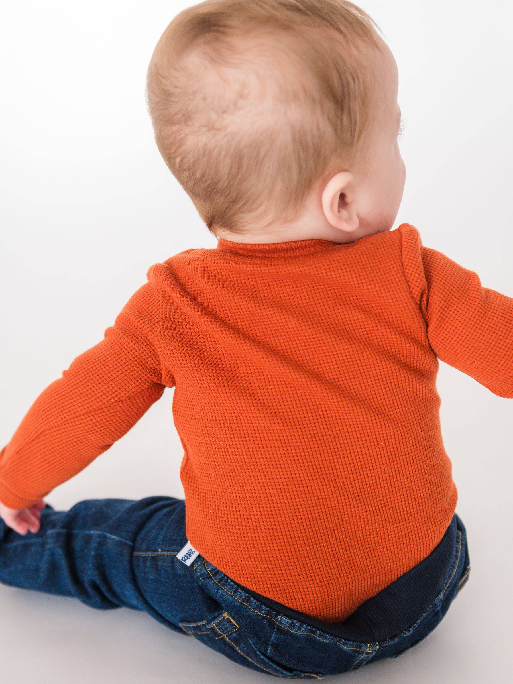 Baby Boys Rust Waffle Knit Henley Bodysuit
