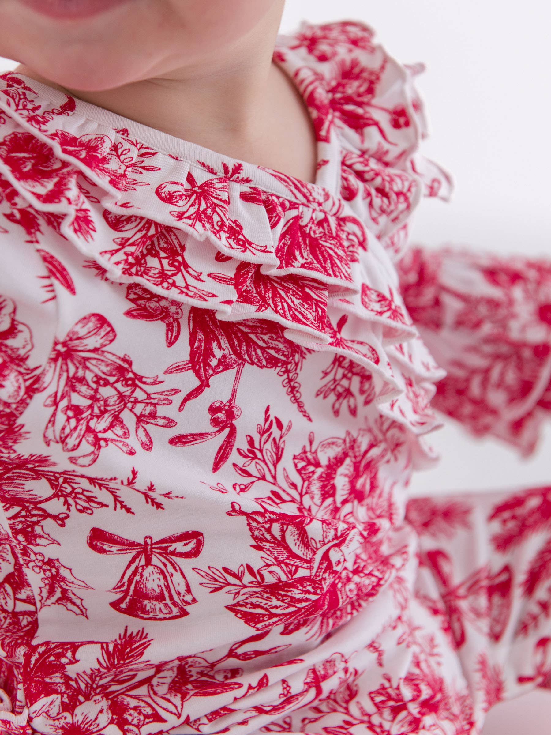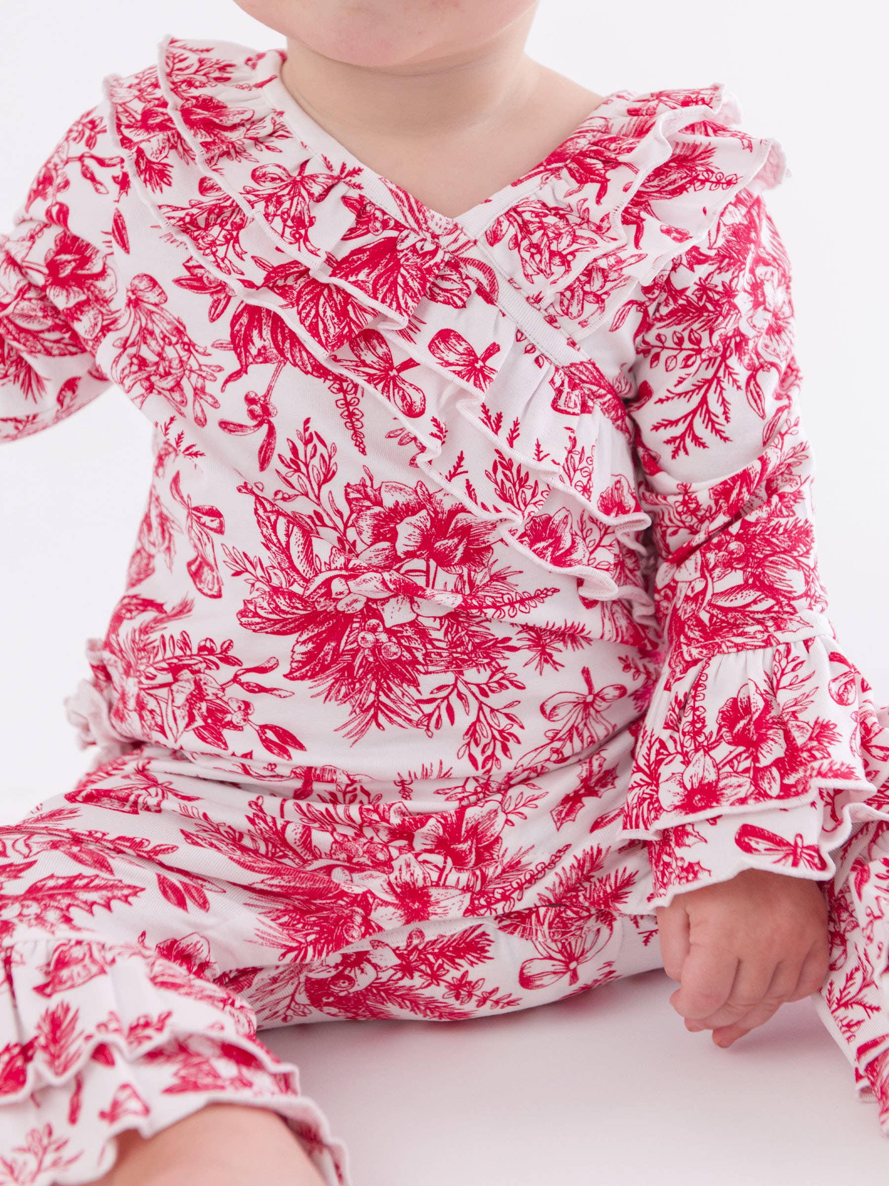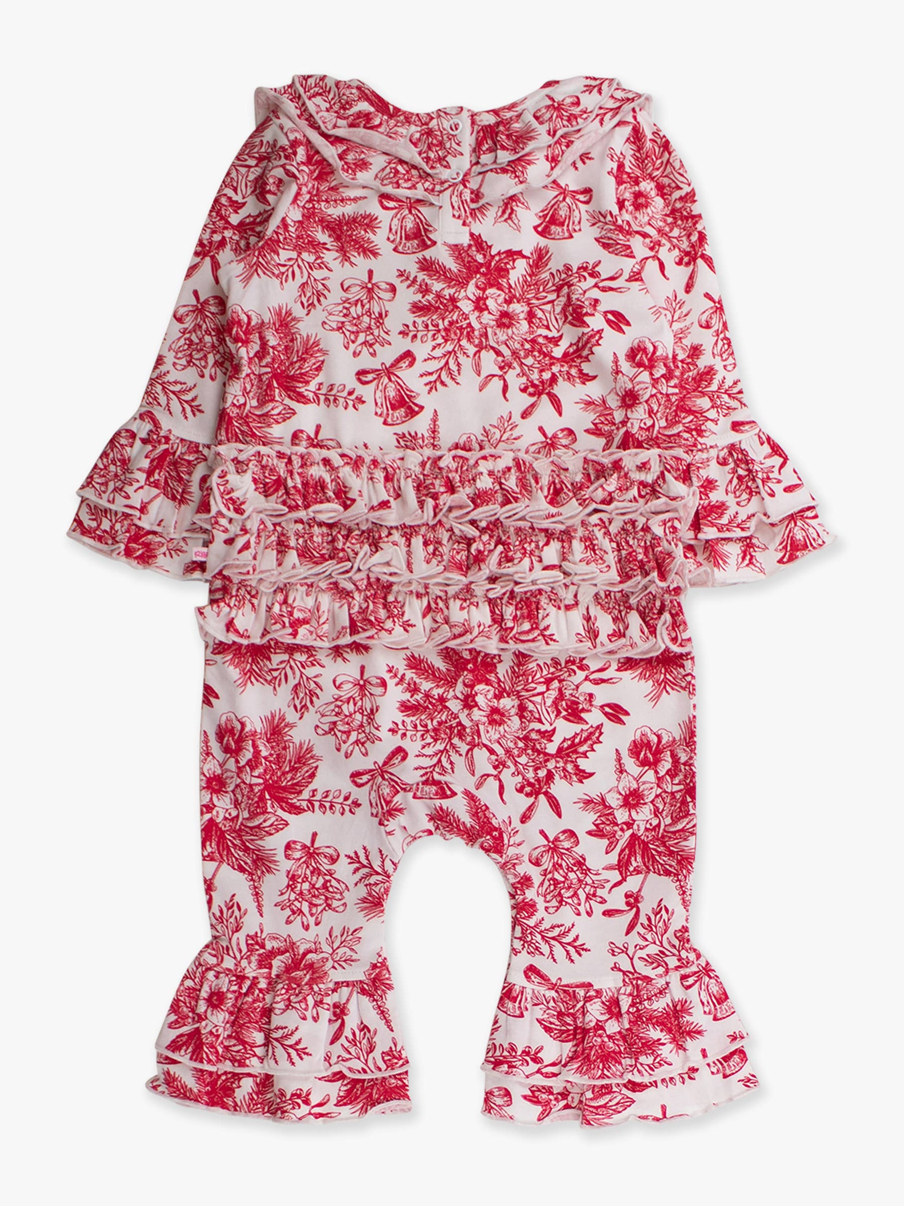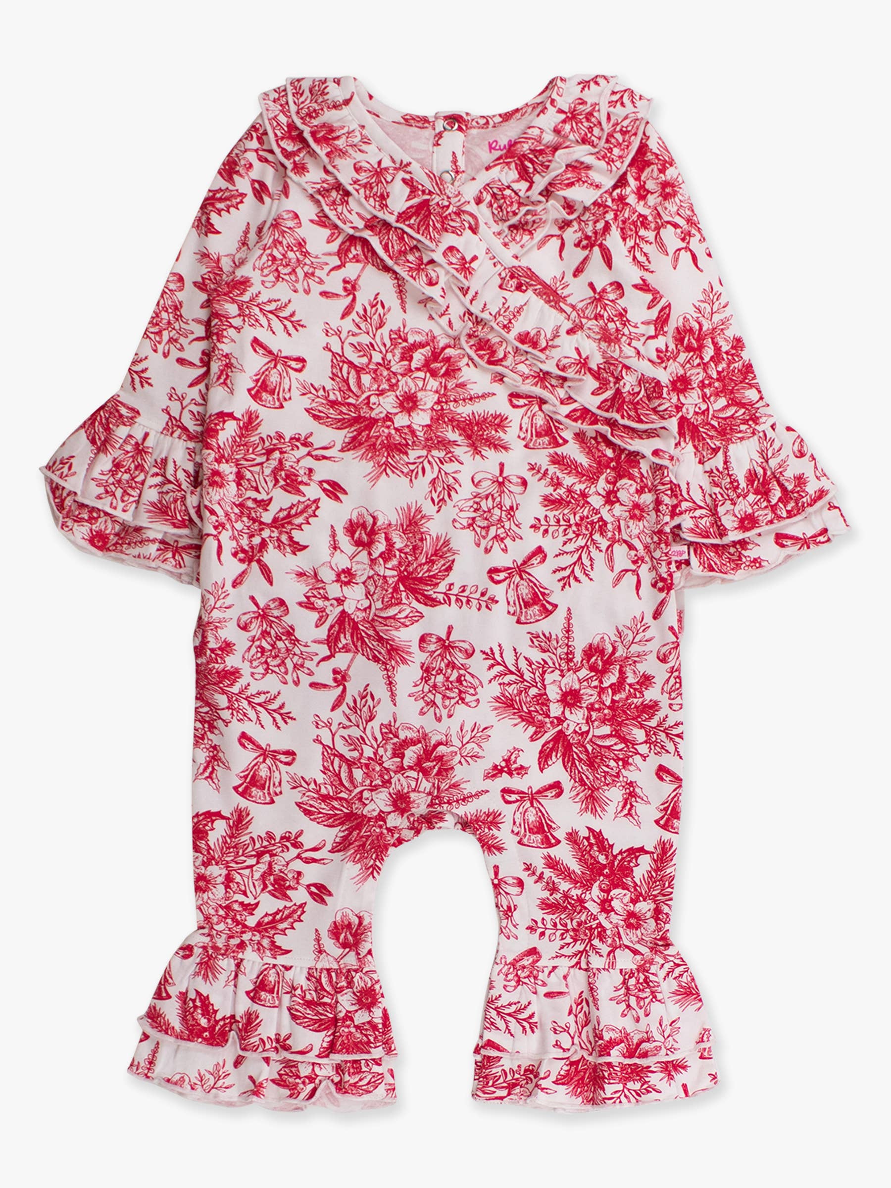 Baby Girls Red Jingle Toile the Way Knit Long Sleeve Ruffle Flare Romper