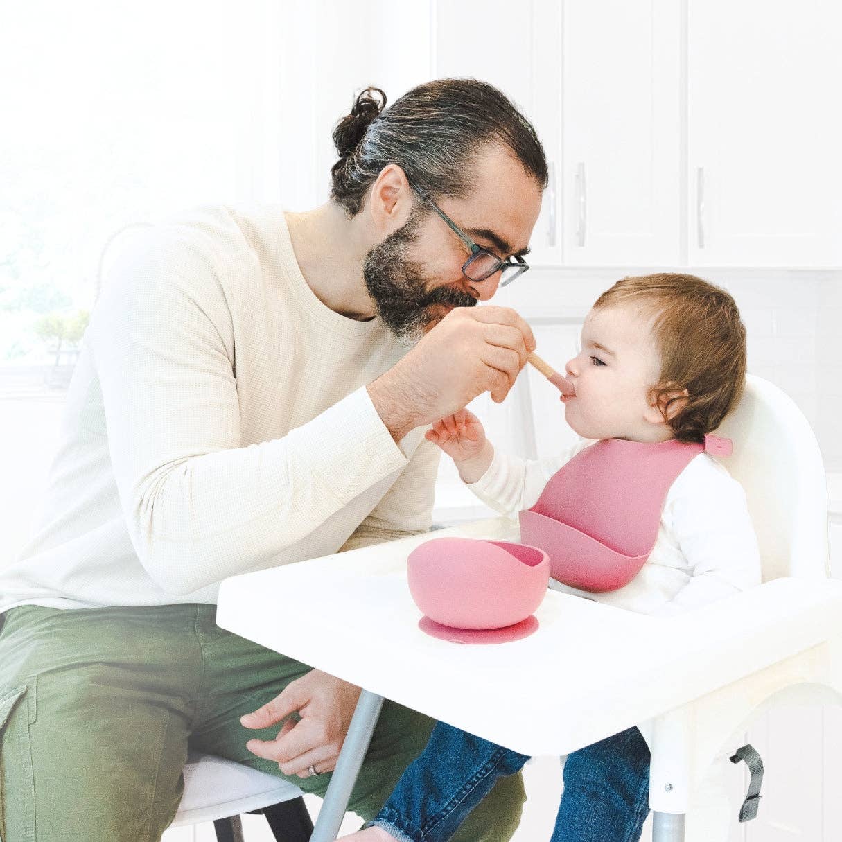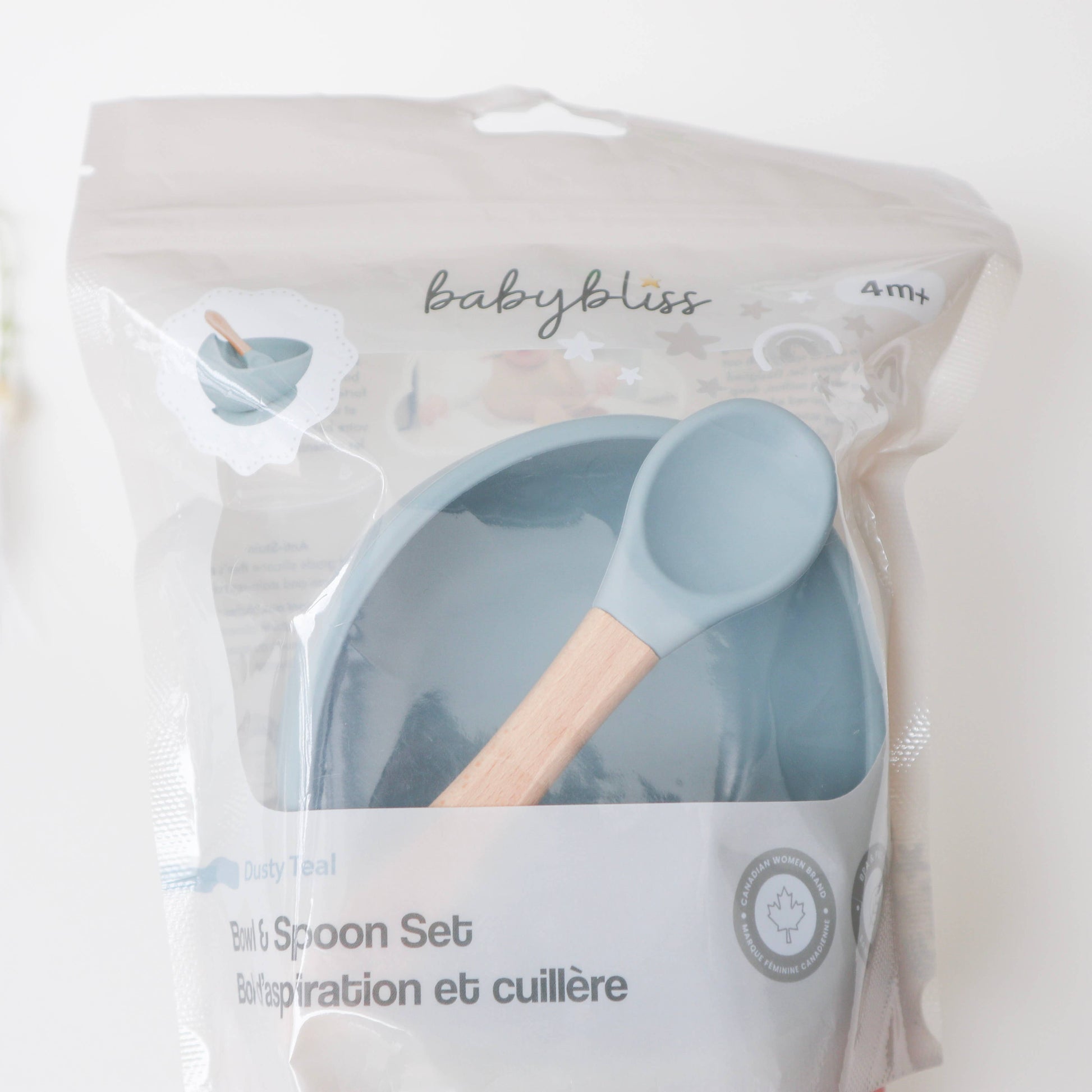 Designed in Canada, this silicone suction bowl by Baby Bliss features a strong suction base, deep bottom, and rounded side to help your little one easily scoop and learn to independently self-feed while minimizing the mess. Our infant spoon has a bamboo handle making it easy to hold and a silicone edge for scooping up food. This feeding set is a great choice for both baby-led weaning and experienced toddlers.