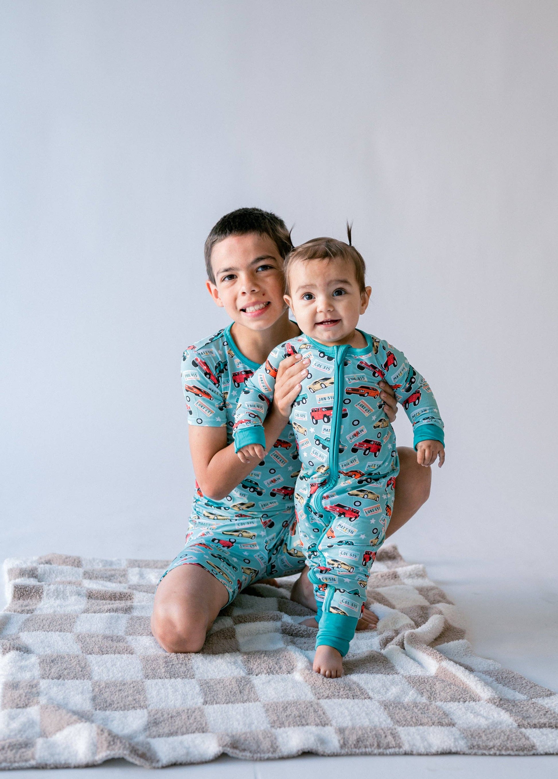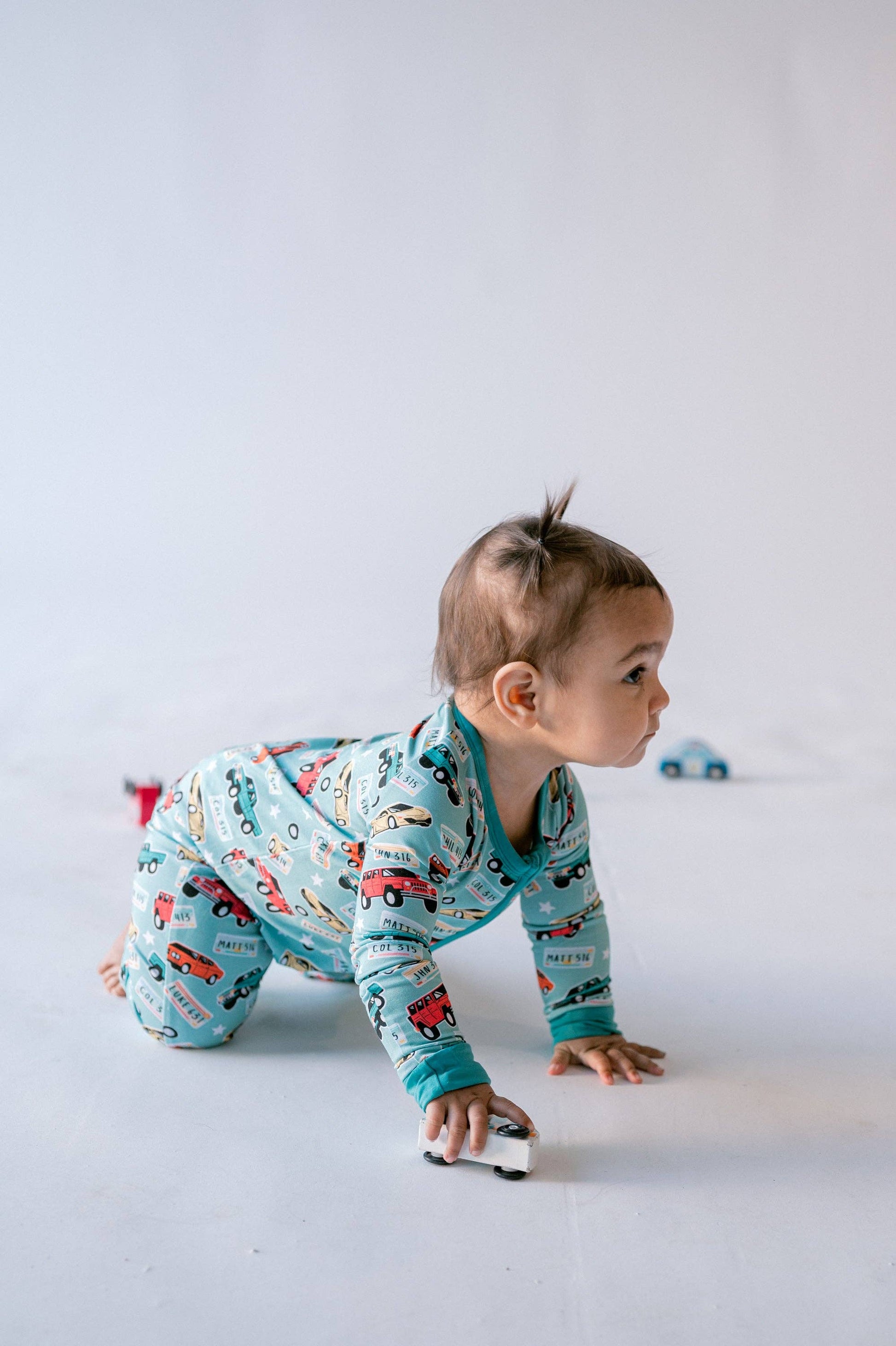 Our unique and exclusive print designs celebrate the light inside our little ones. Our “Fast and Faithful” collection features fun cars and license plates with Bible verses to help teach your little ones the scripture. Perfect for sibling matching, this print is also available in our two-piece pajamas!