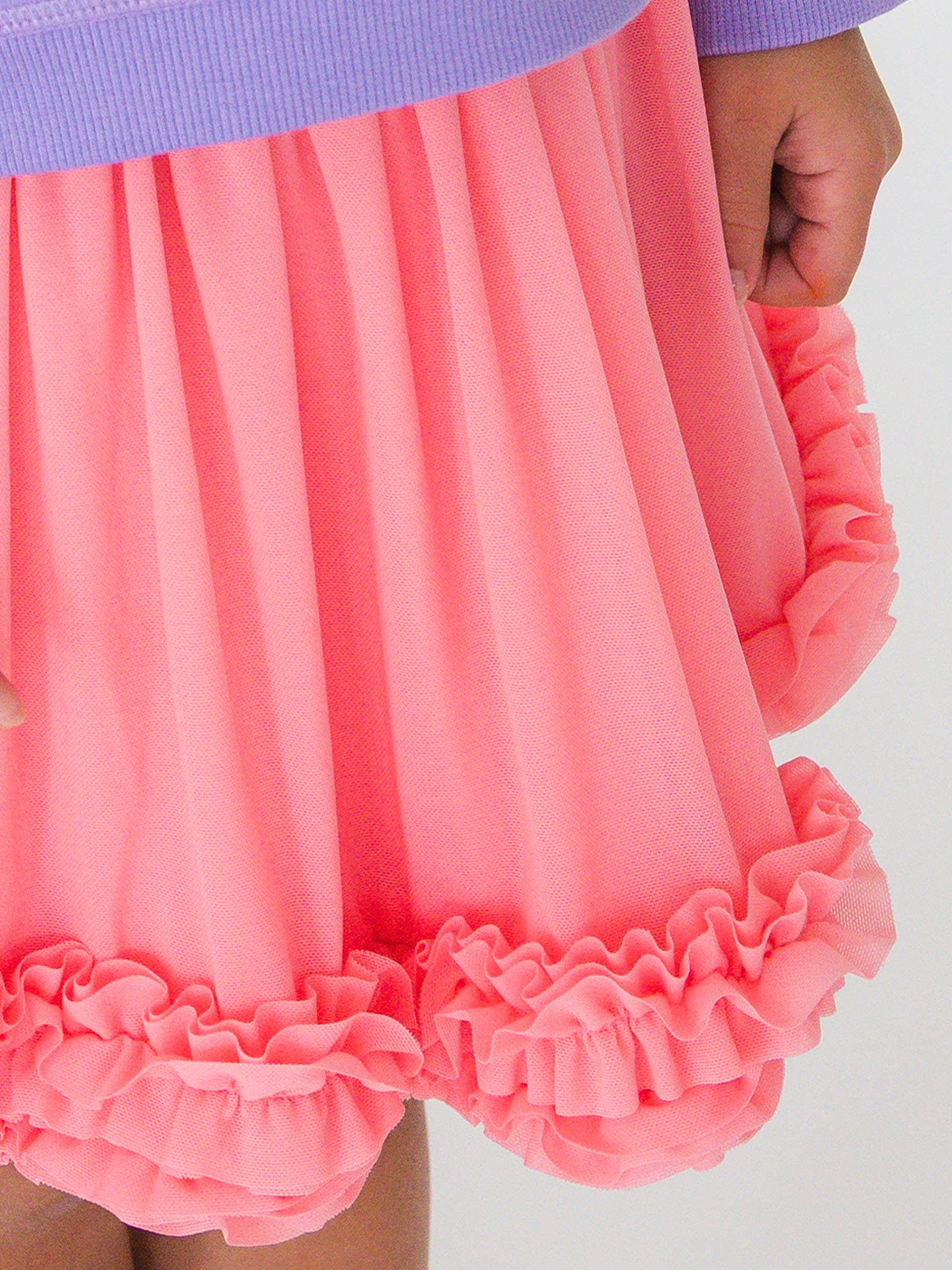 This skirt is made for girls who love to twirl! Multiple layers of soft tulle add volume to the skirt, and the ruffle hem adds that extra girly touch. The elastic waistband ensures all-day comfort.