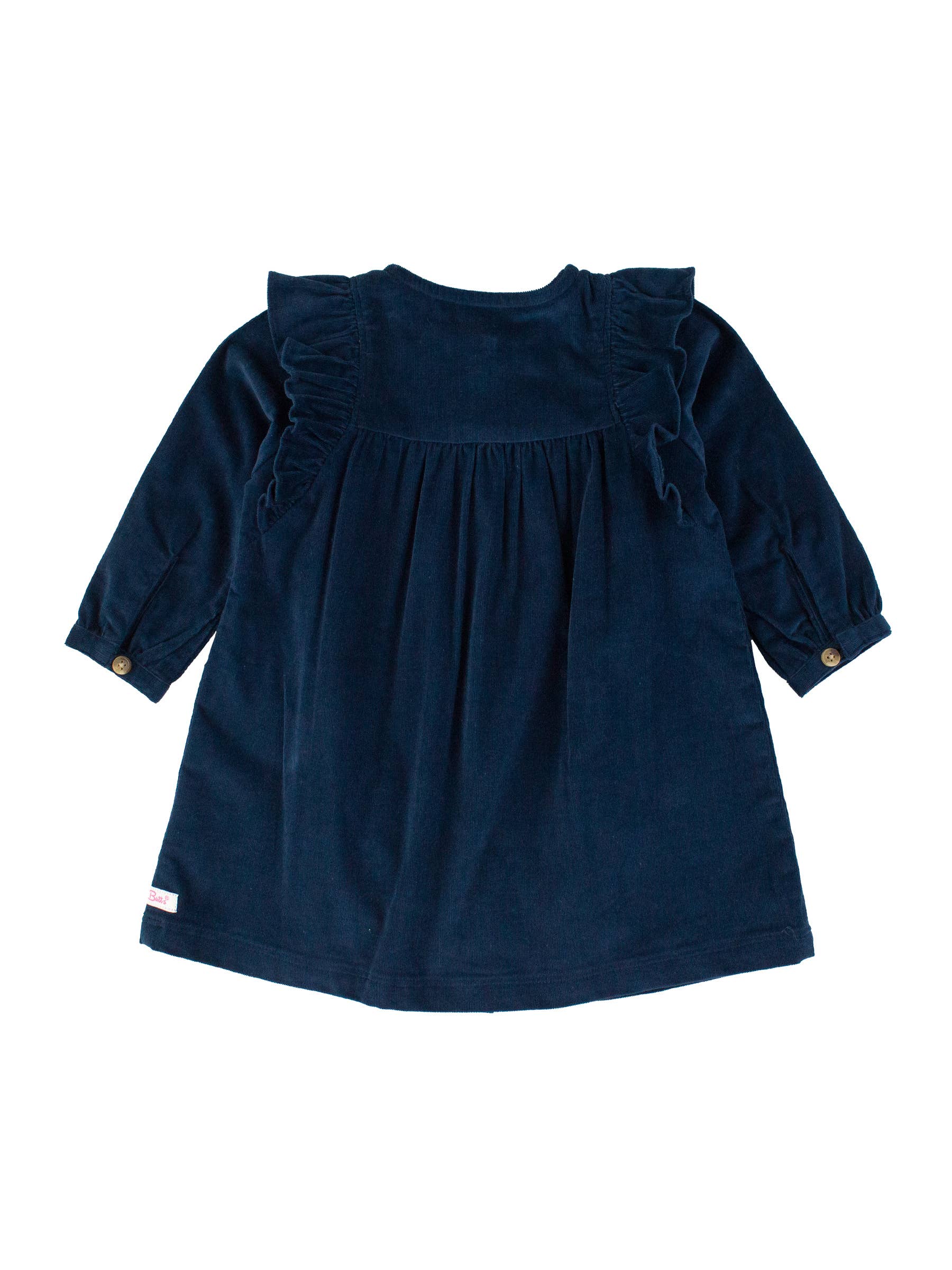 Girls Dark Navy Stretch Corduroy Ruffle Detail Dress