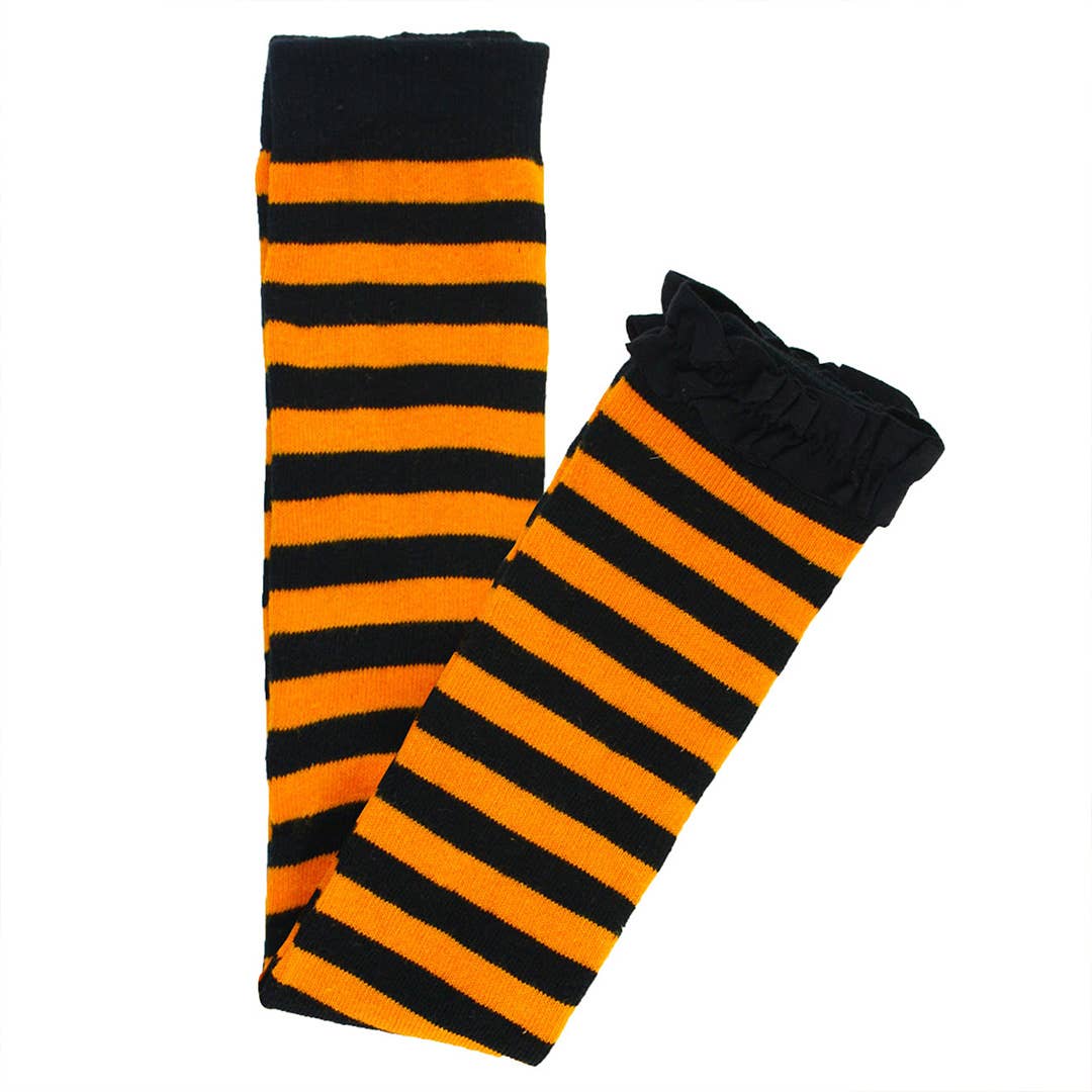 Girls Orange & Black Stripe Patterned Footless Ruffle Tights