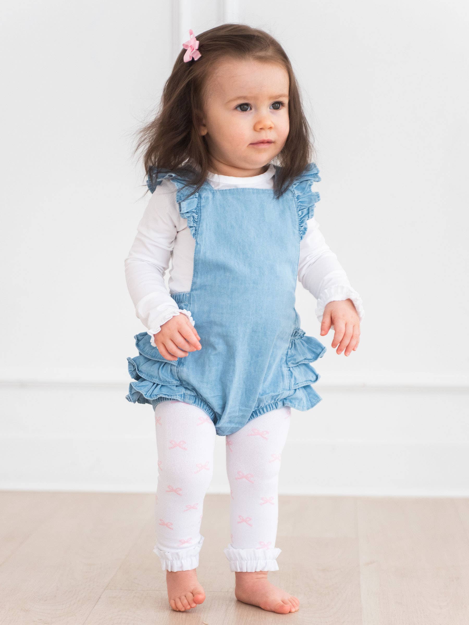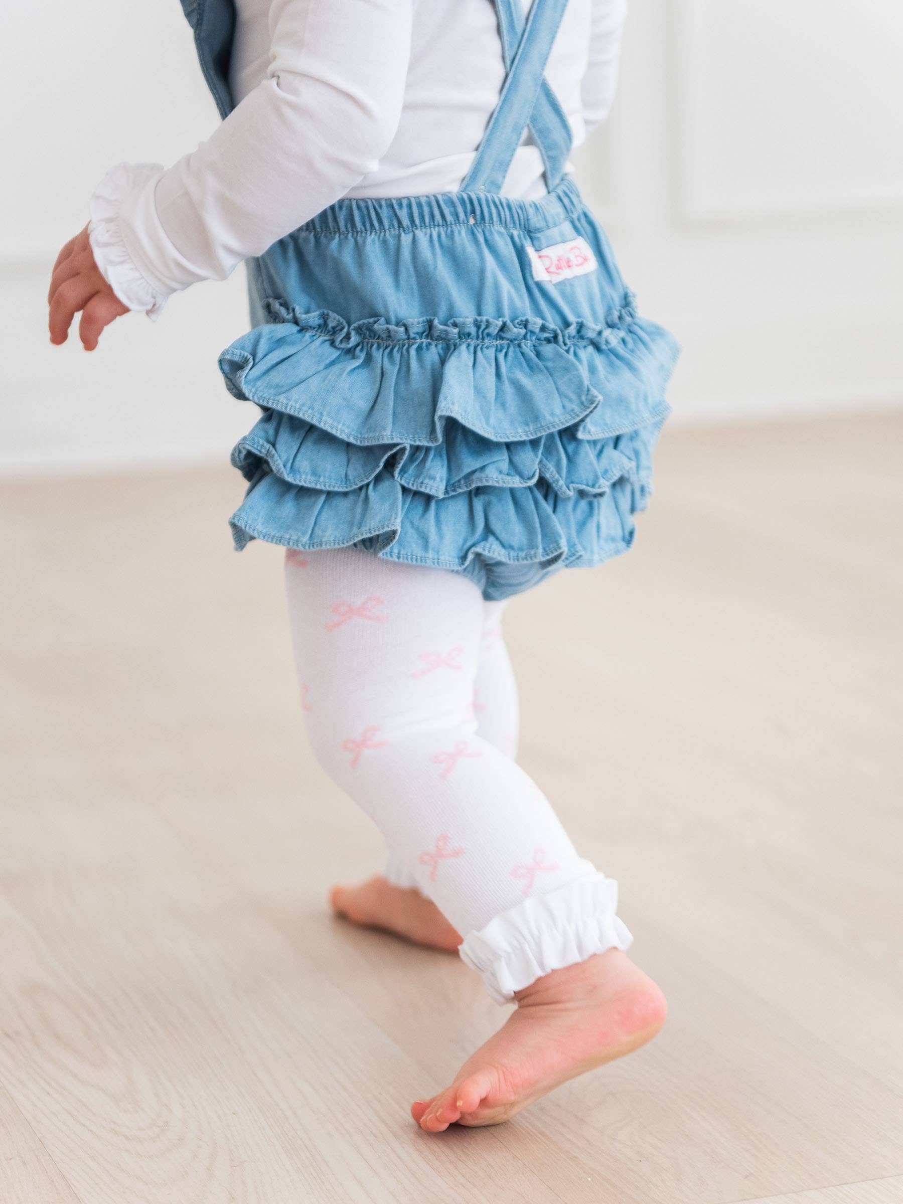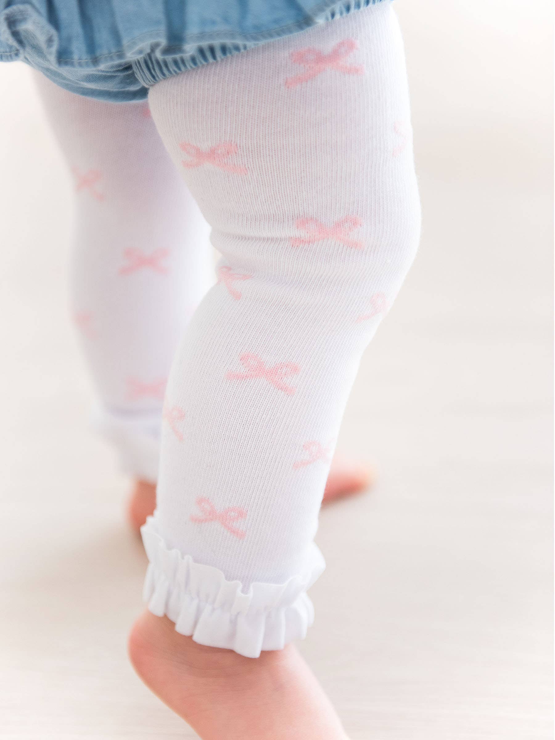 Girls Pink Bows Patterned Footless Ruffle Tights