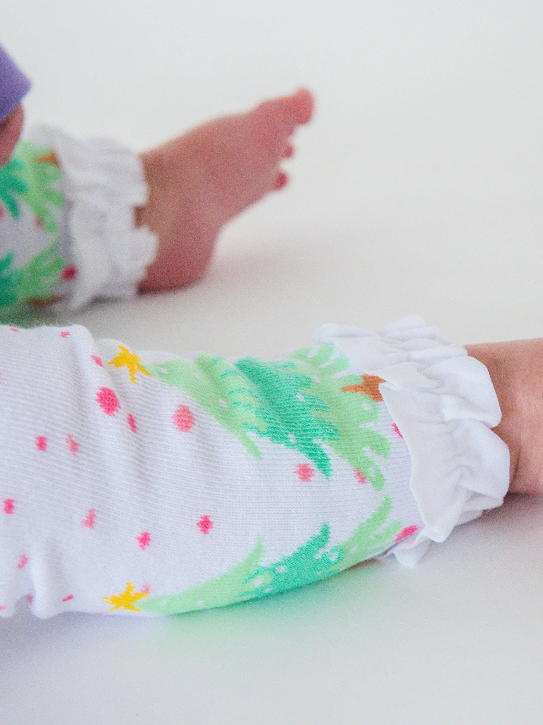 Girls Polka Dot Trees Patterned Footless Ruffle Tights