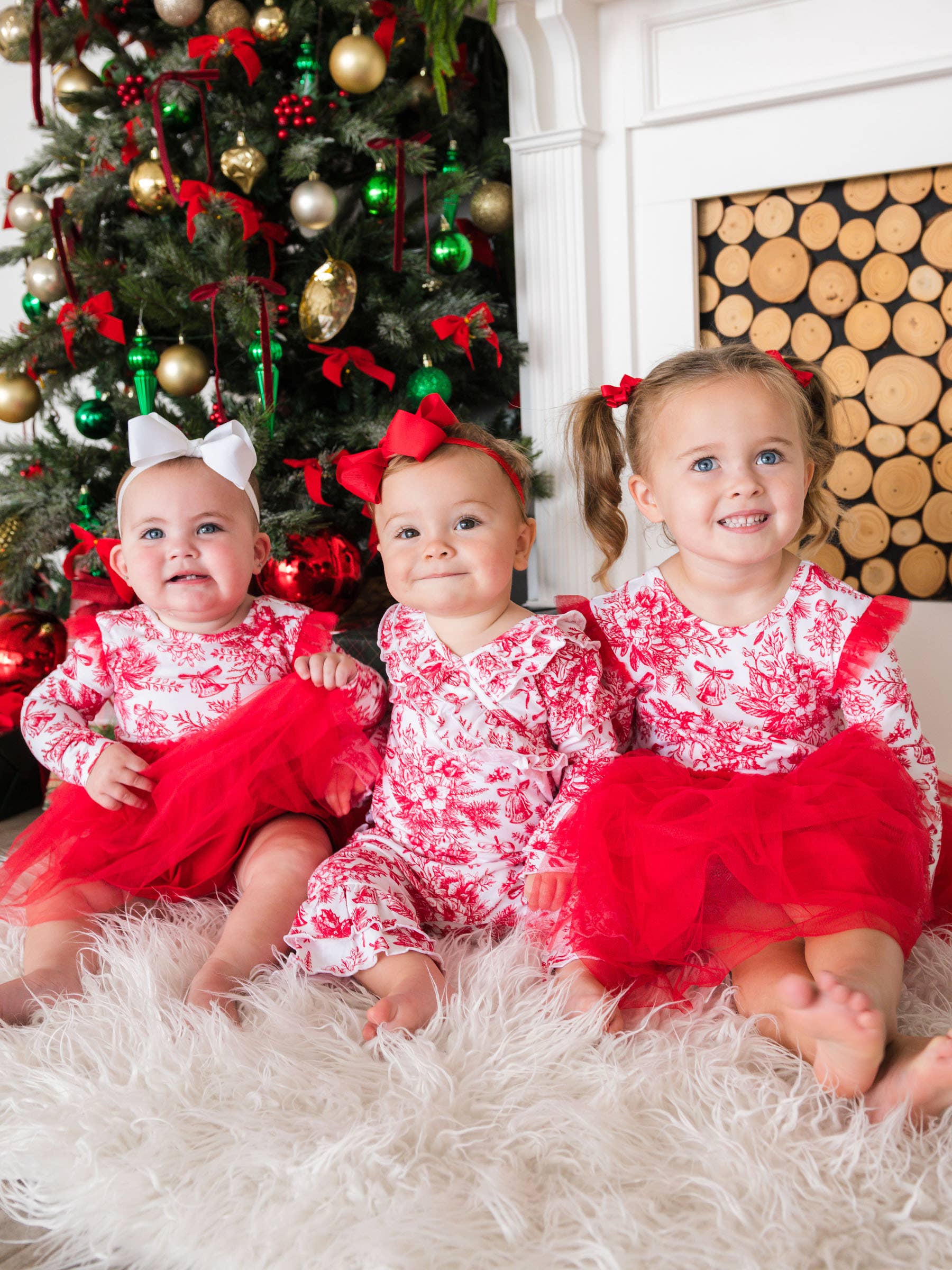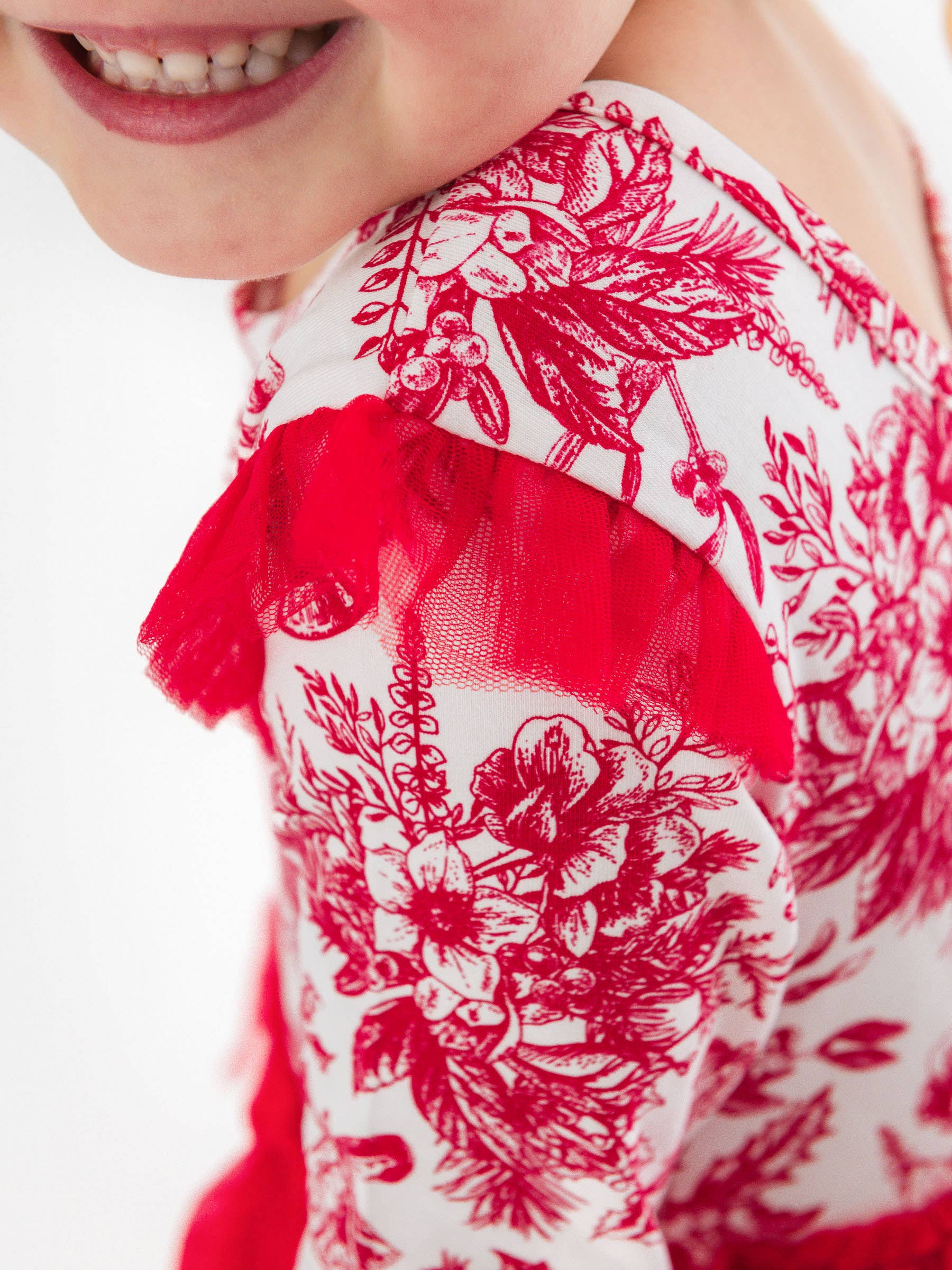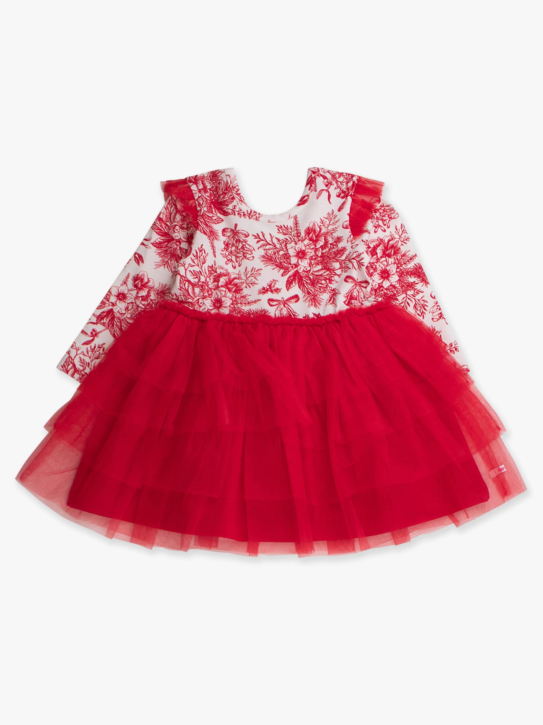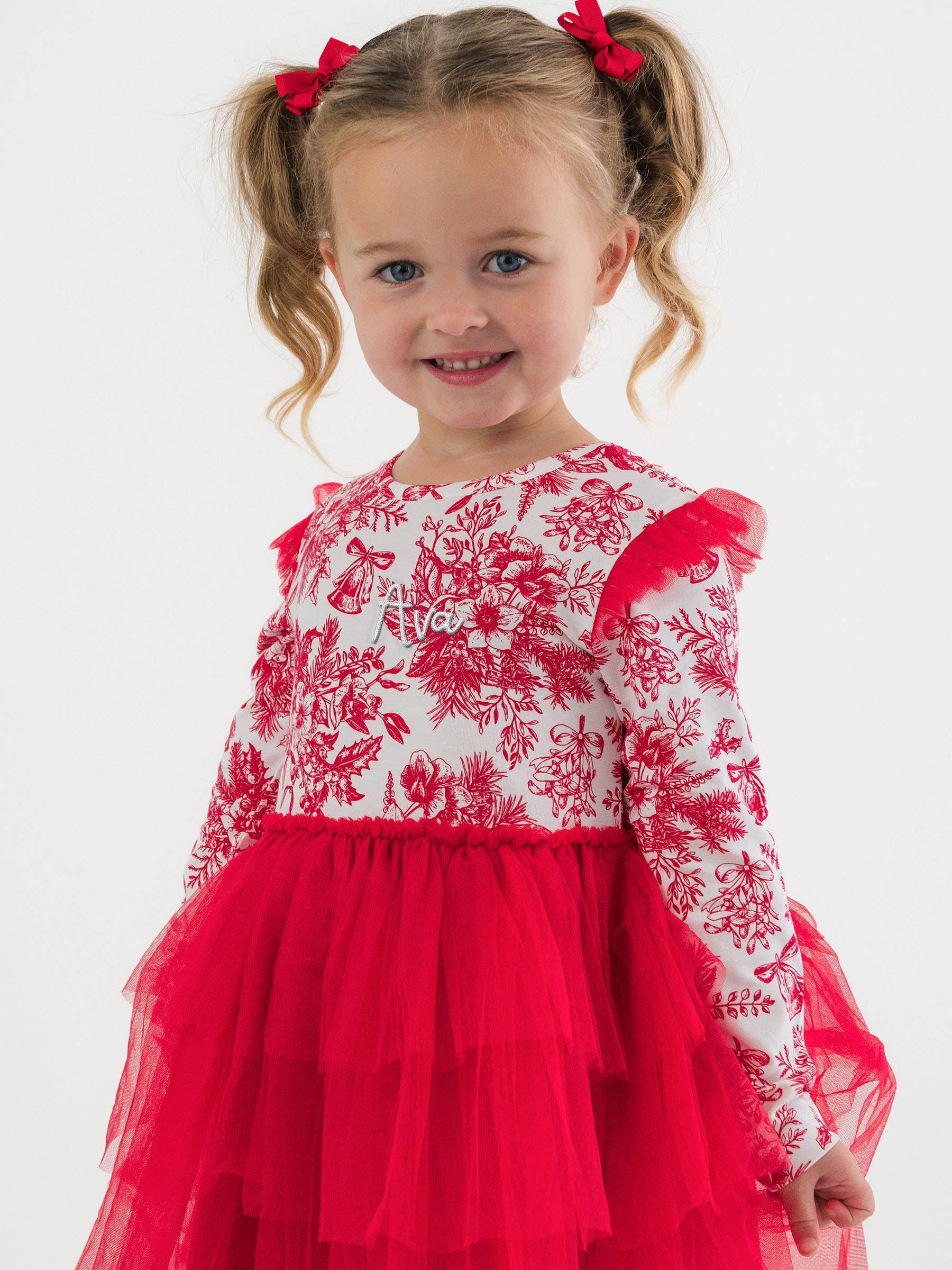 Girls Red Jingle Toile the Way Flutter Tulle Long Sleeve Twirl Dress