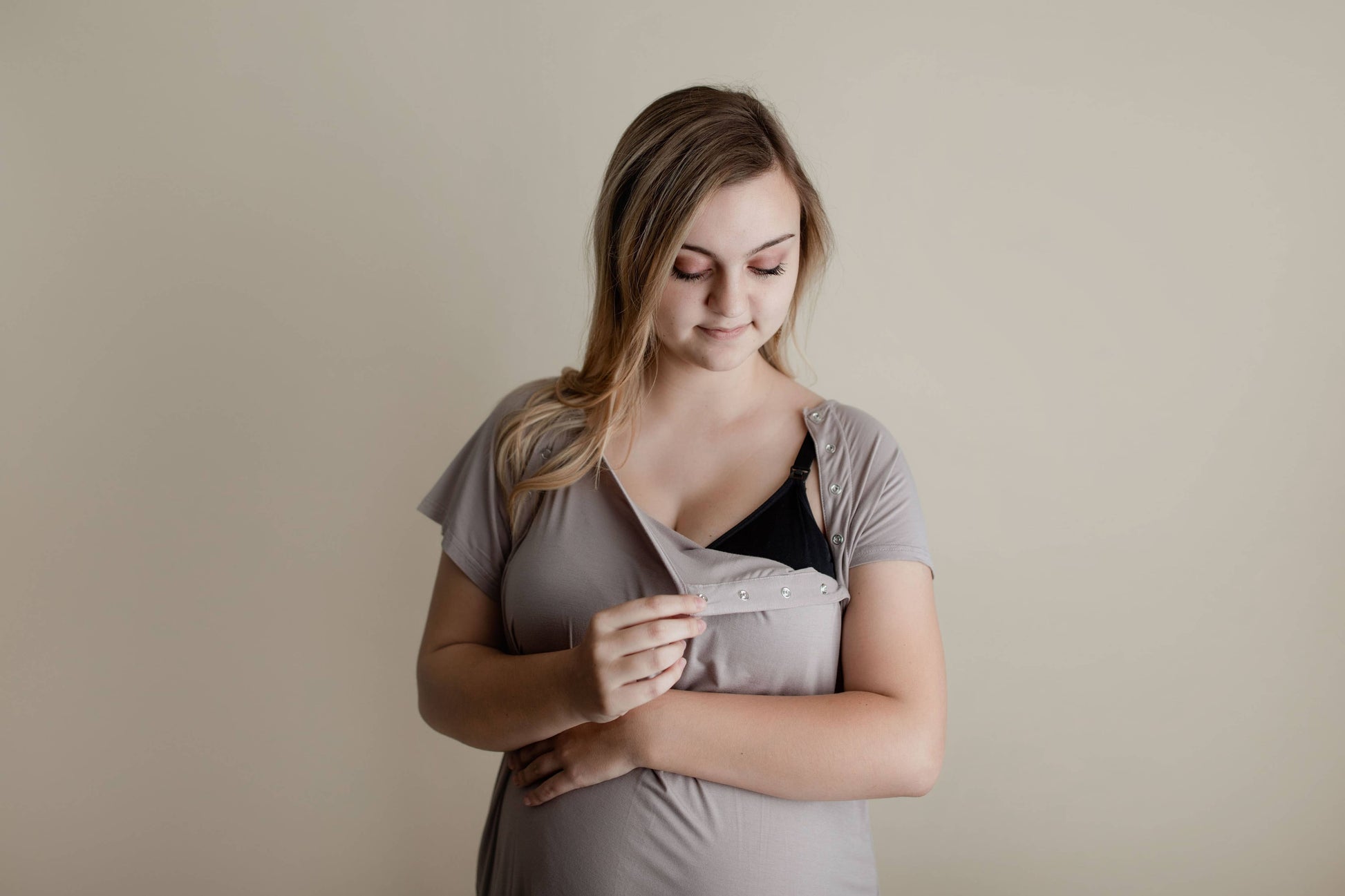 The perfect hospital gown for labor and delivery with all the functionality doctors and doulas recommend. Our gowns are stretchy, breathable and ultra-soft that will make you want to lounge in them pre and post-baby. The perfect alternative to those old hospital gowns. Designed with comfort and functionality in mind, these gowns feature easily open snaps for examinations, breastfeeding and skin-to-skin contact with you baby.