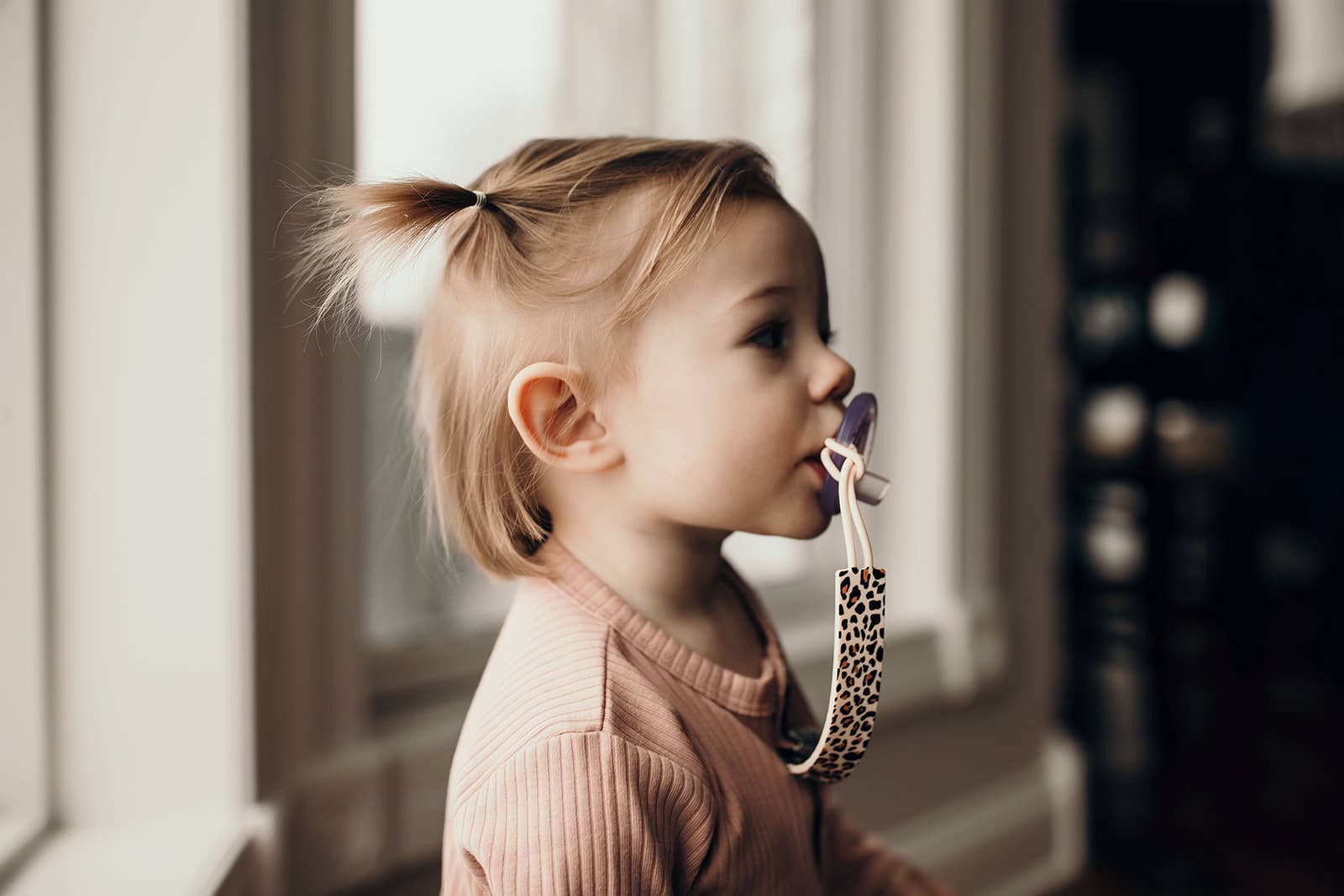 2. Thread the silicone loop through the item of your choosing – pacifier, teether, soothie, toy, lovey, sippy cup, snack containers, stuffed animals, etc.