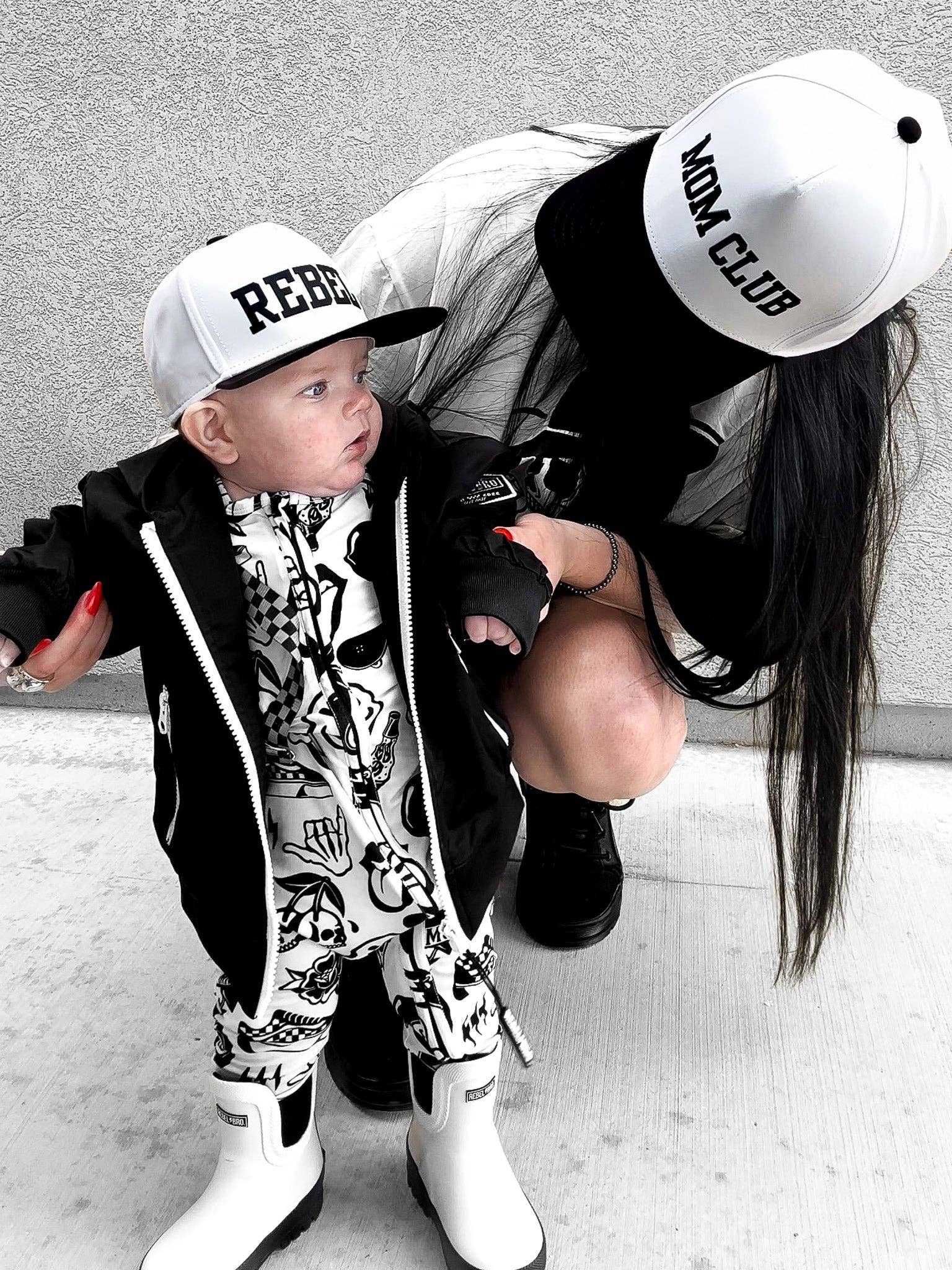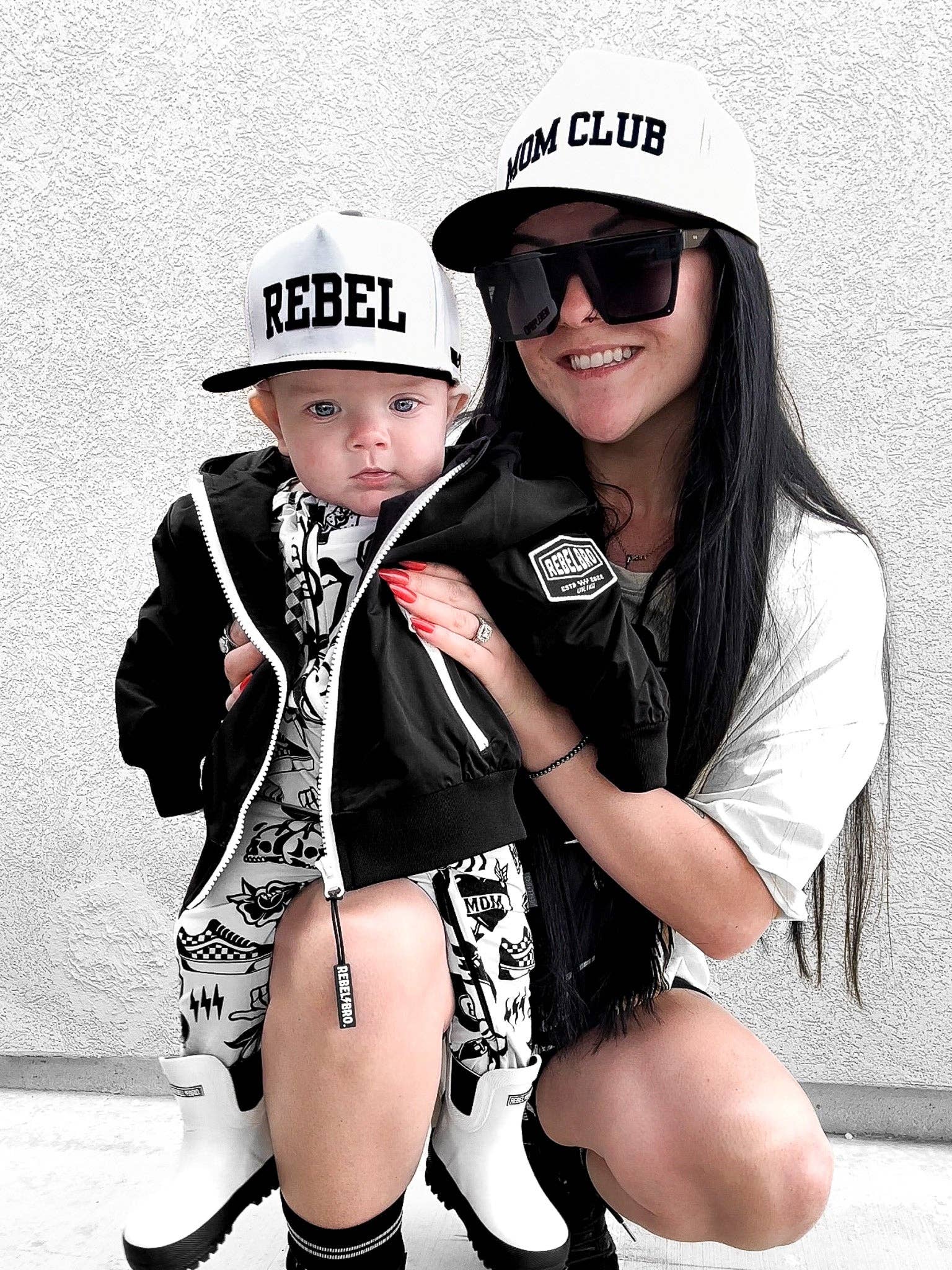 The MOM CLUB x Hydro is waterproof, lint proof and traditionally structured with snapback rear.