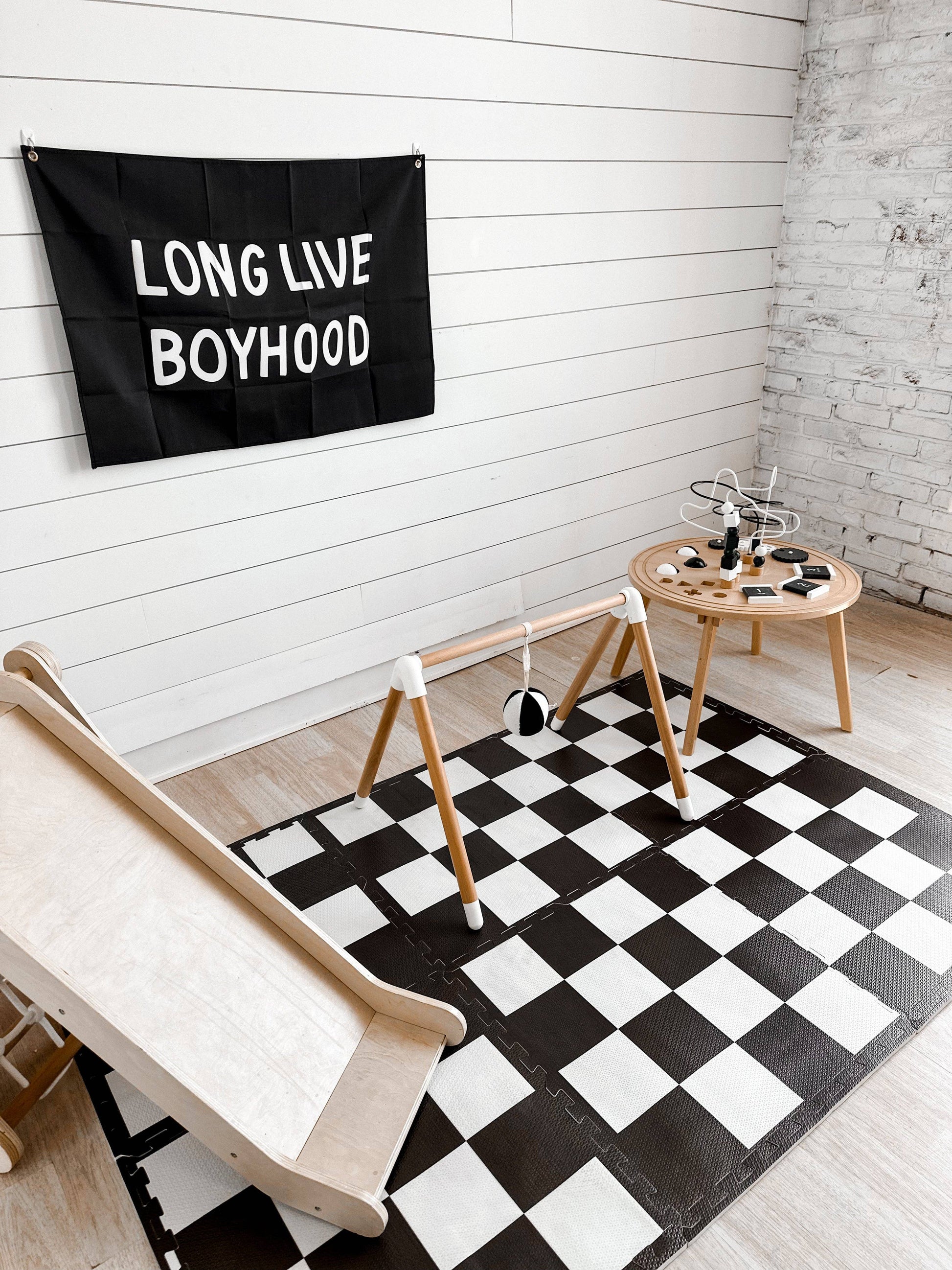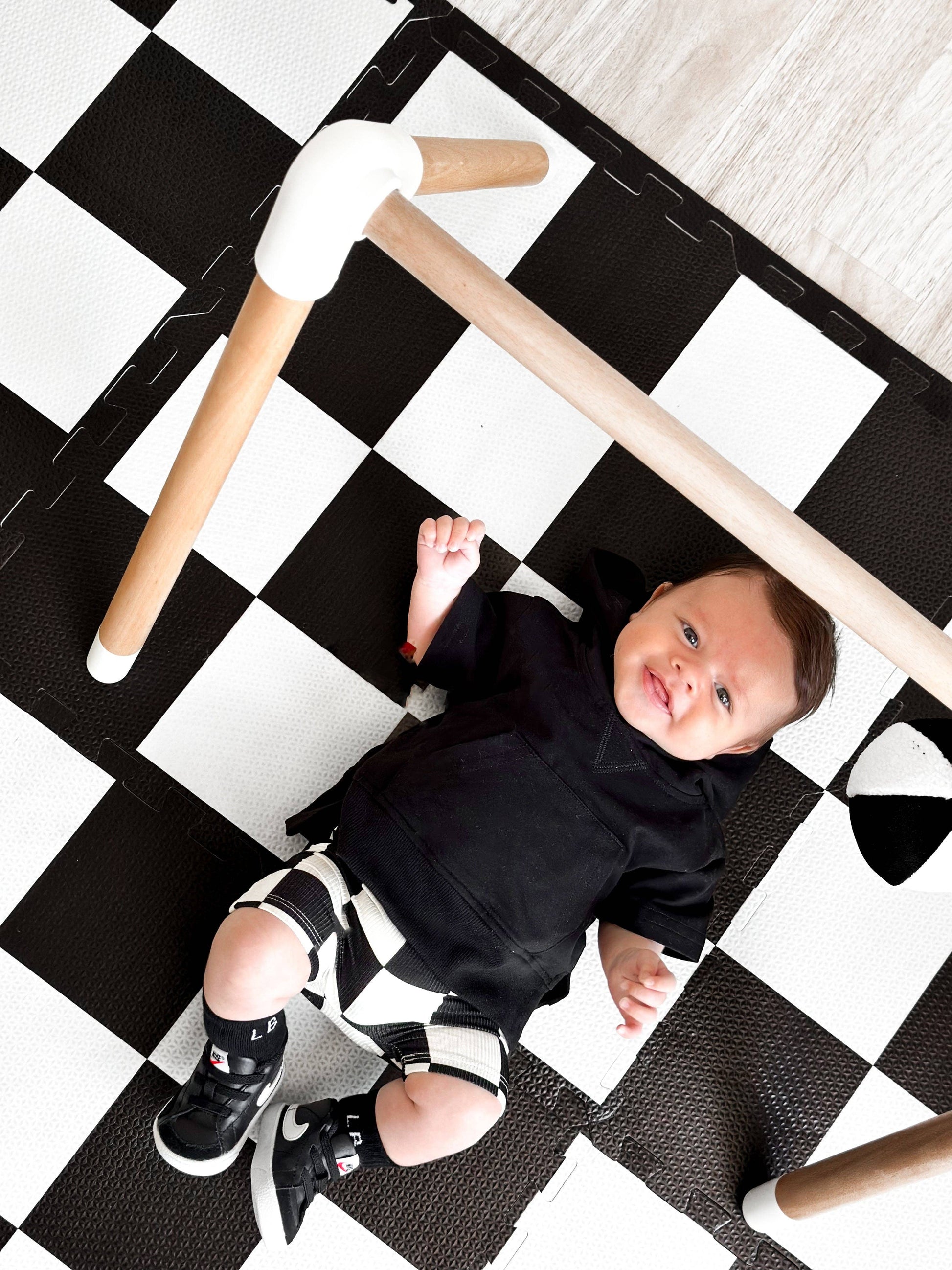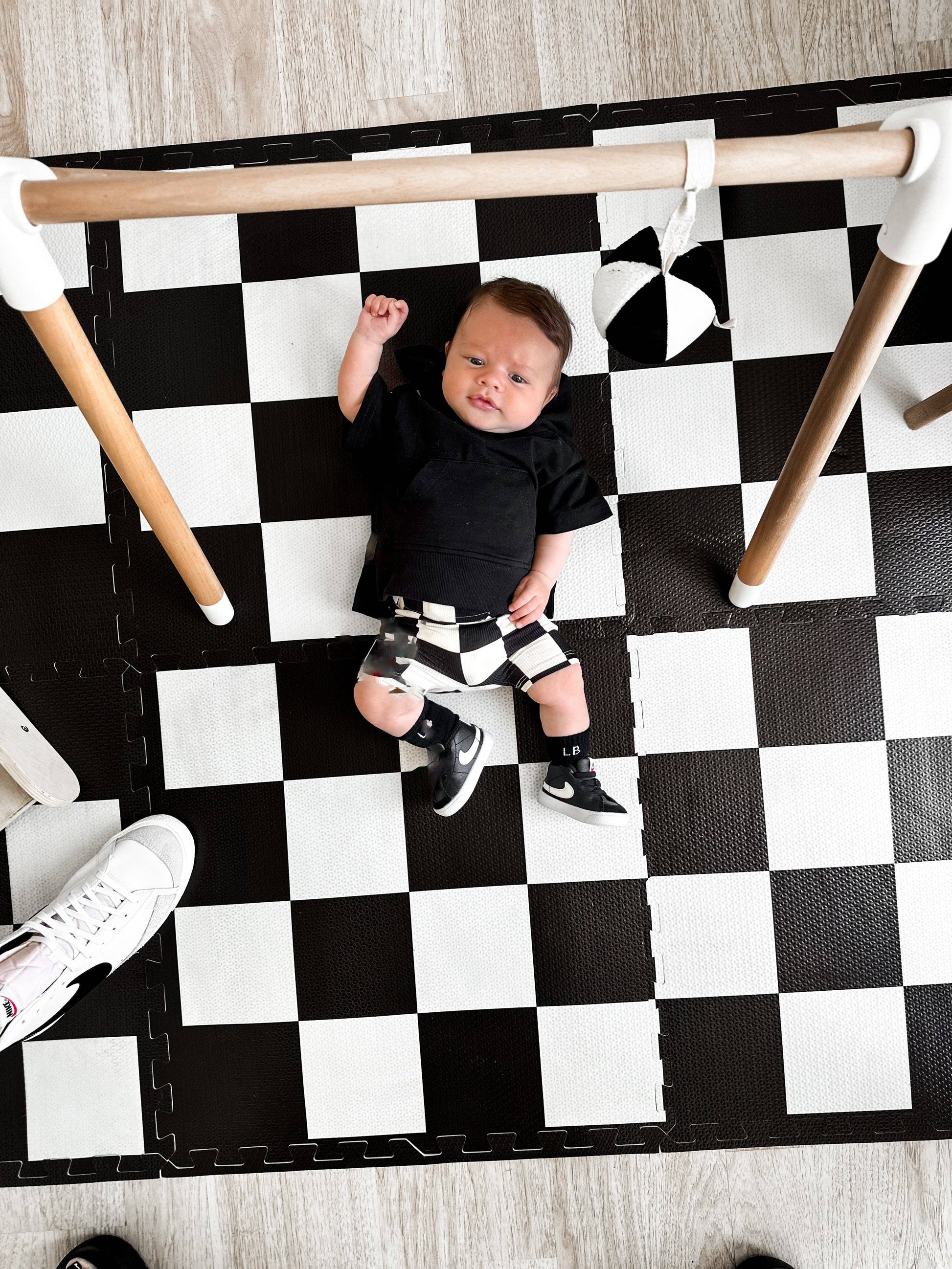 Our new Rebel Proof Play Mat is perfect for use during tummy time or floor play. Get ready for endless hours of playtime fun with our interlocking foam play mat! This floor mat is super durable, comfortable for your little one, and offers a safe and chemical-free play space. This play mat features our bestselling Venice print. Perfect for tummy time, crawling, and playtime, this mat is the ultimate addition to any nursery or playroom. • (6) 2ft x 2ft squares - 4ft x 6ft assembled.