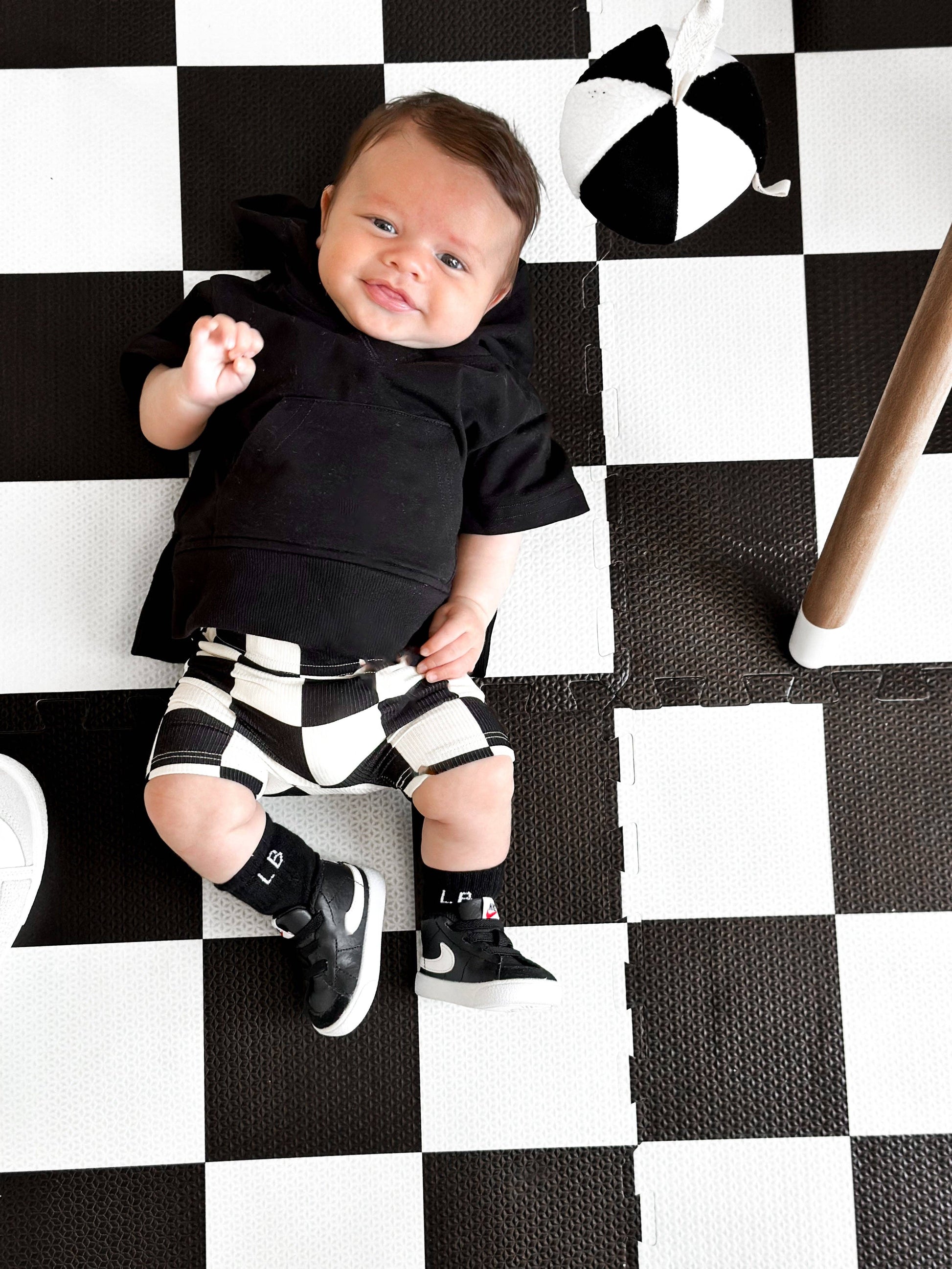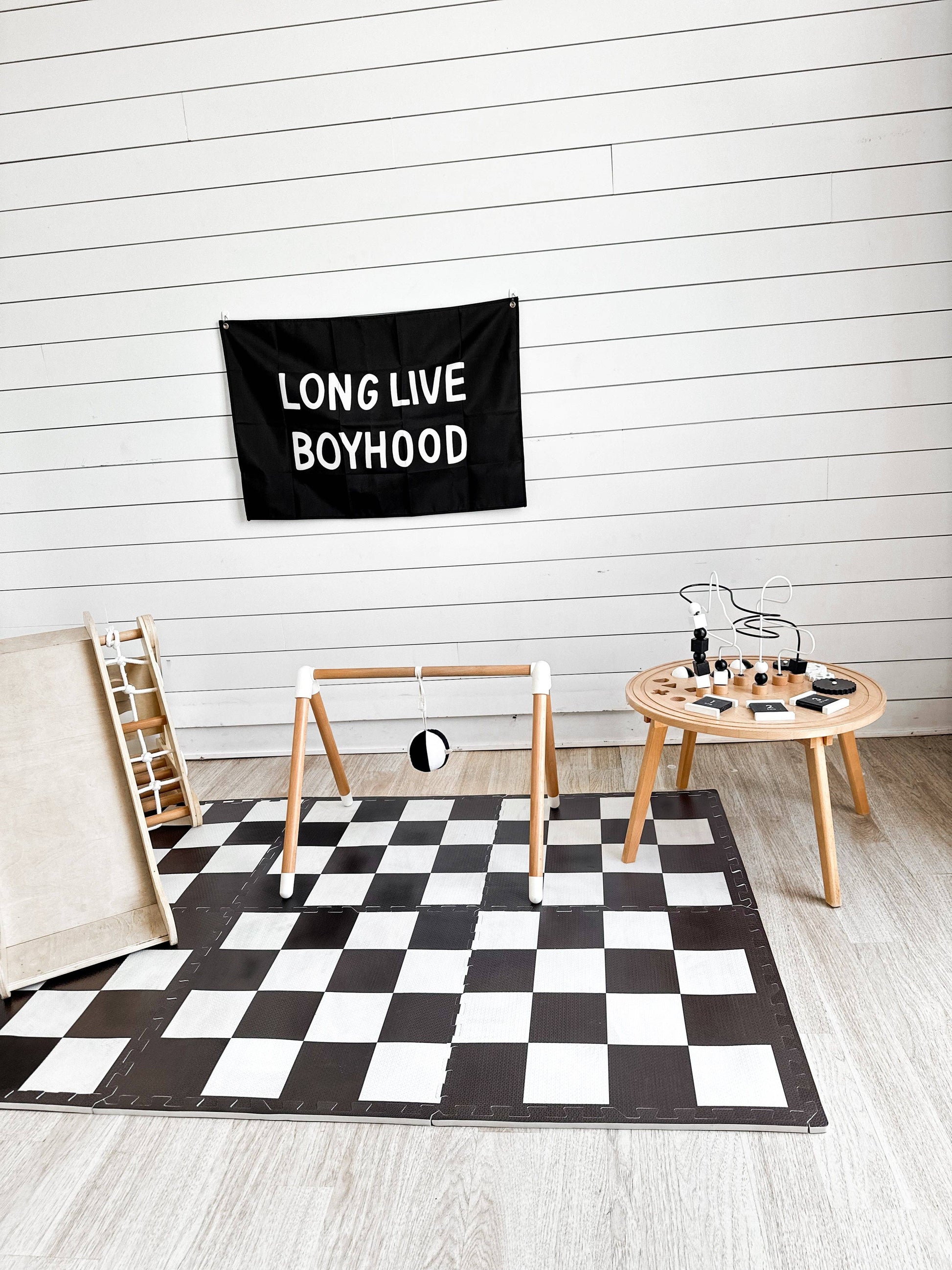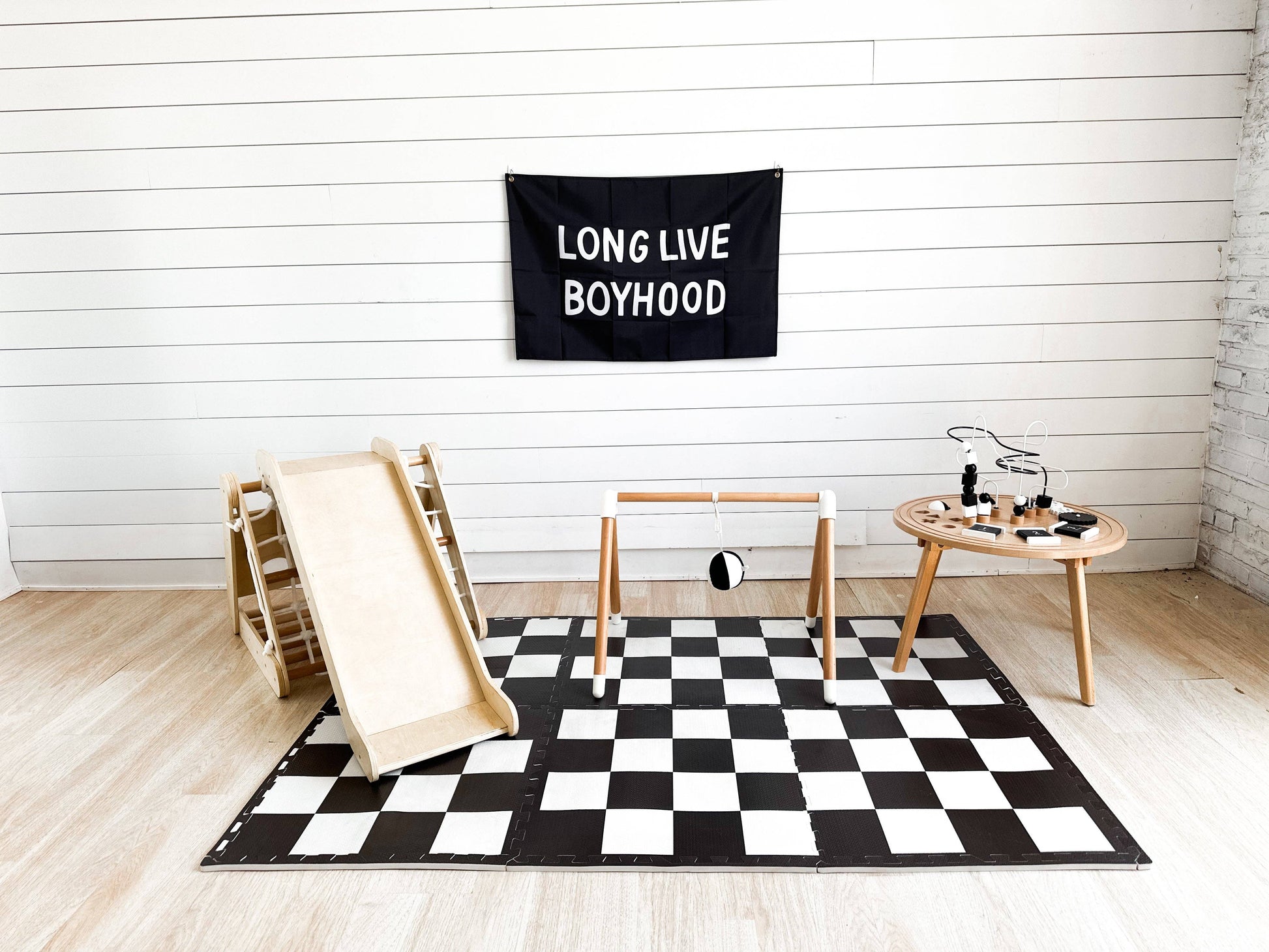 Our new Rebel Proof Play Mat is perfect for use during tummy time or floor play. Get ready for endless hours of playtime fun with our interlocking foam play mat! This floor mat is super durable, comfortable for your little one, and offers a safe and chemical-free play space. This play mat features our bestselling Venice print. Perfect for tummy time, crawling, and playtime, this mat is the ultimate addition to any nursery or playroom. • (6) 2ft x 2ft squares - 4ft x 6ft assembled.