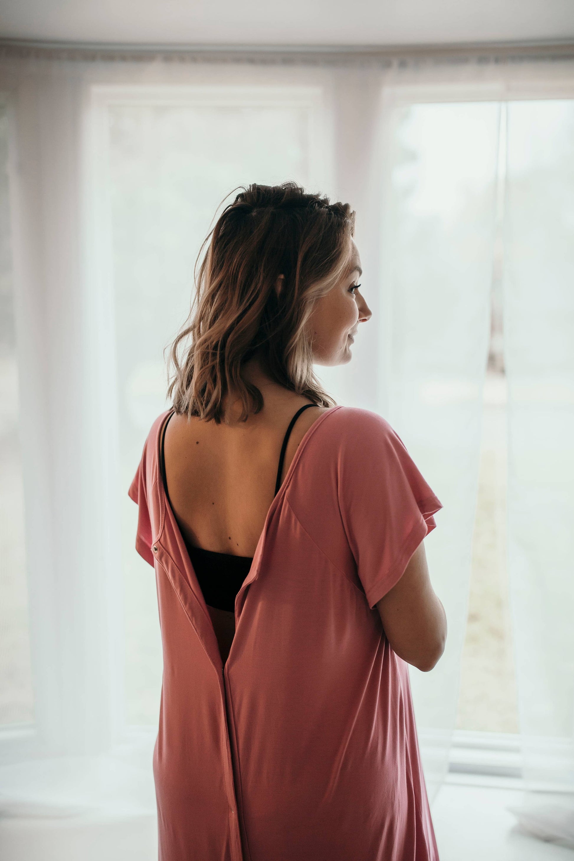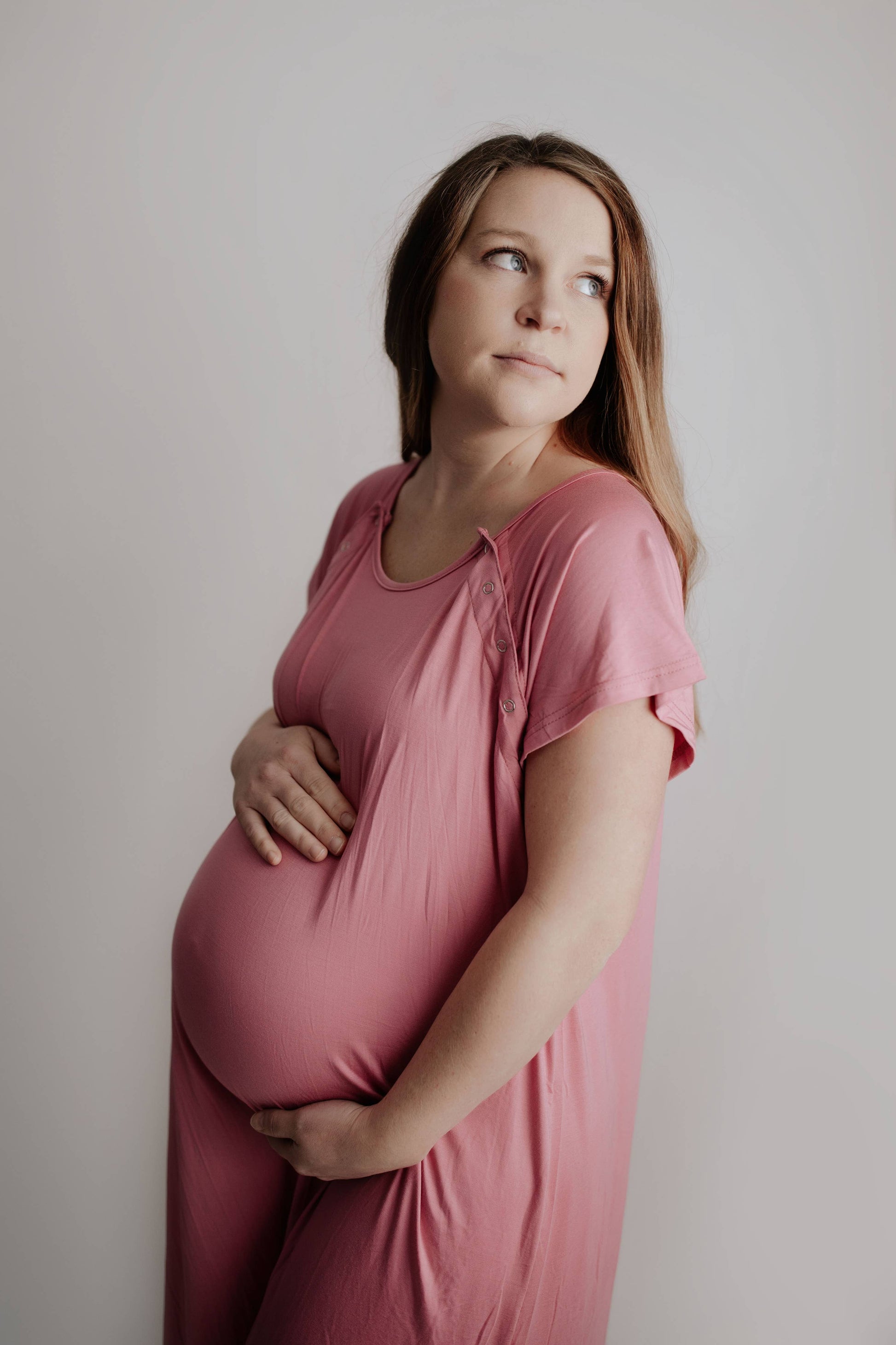 The perfect hospital gown for labor and delivery with all the functionality doctors and doulas recommend. Our gowns are stretchy, breathable and ultra-soft that will make you want to lounge in them pre and post-baby. The perfect alternative to those old hospital gowns. Designed with comfort and functionality in mind, these gowns feature easily open snaps for examinations, breastfeeding and skin-to-skin contact with you baby.