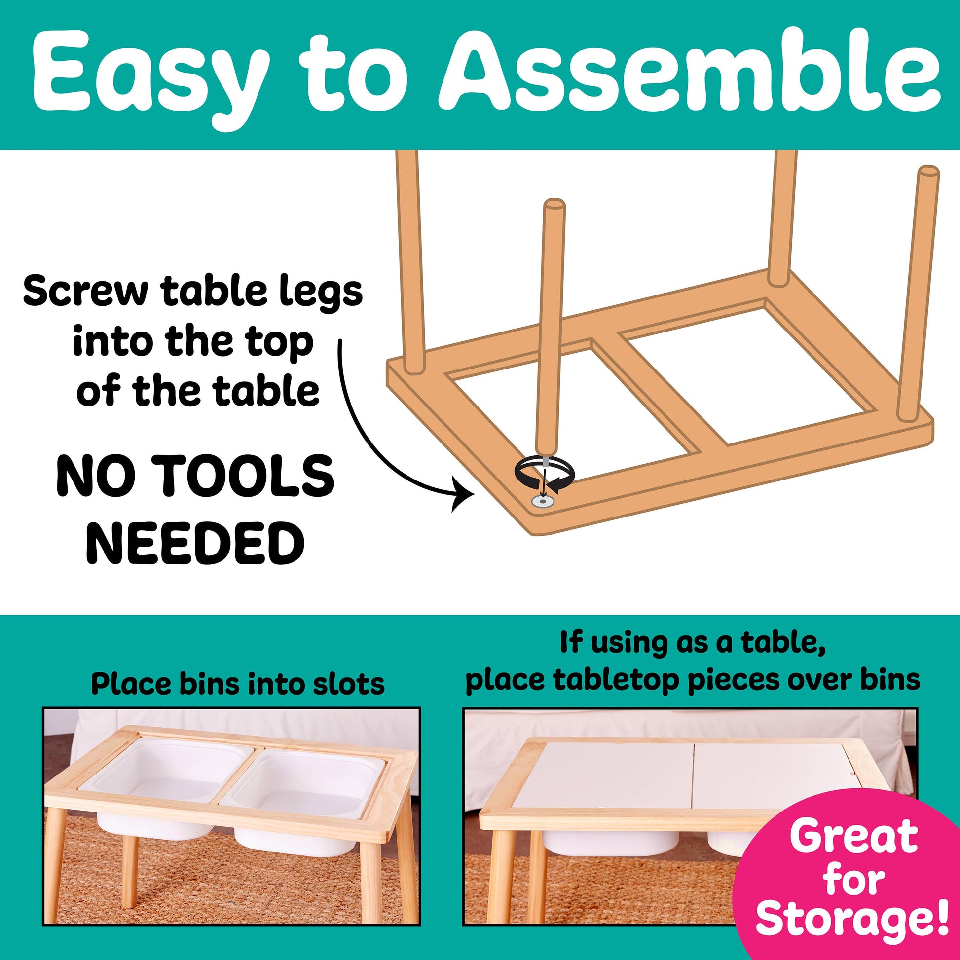 Scoop, sort, and explore with hands-on sensory play! The Deluxe Sensory Table for Toddlers age 3-5 provides the perfect pretend play experience. Everything you need is included with this ultimate sensory activity center! This table is great for playrooms, daycares and preschools with a multifunctional design. Features a wood sensory table with bins and plenty of sensory toys. Included with the sensory table is a color party-themed sensory bin, filled with 4 colors of sensory sand and plenty of sensory toys to engage the senses. The Color Party Sensory Table is recommended for ages 3+.
