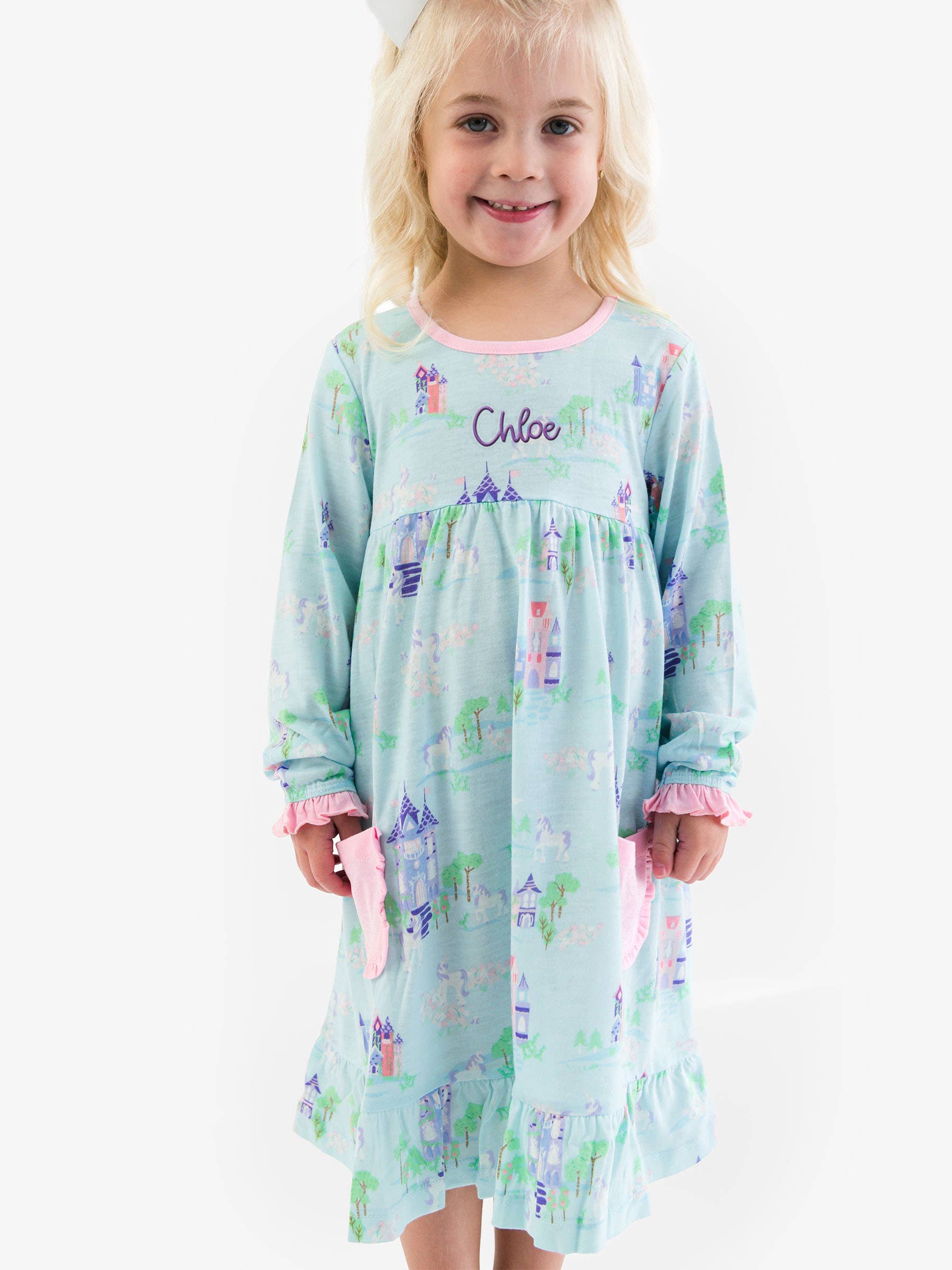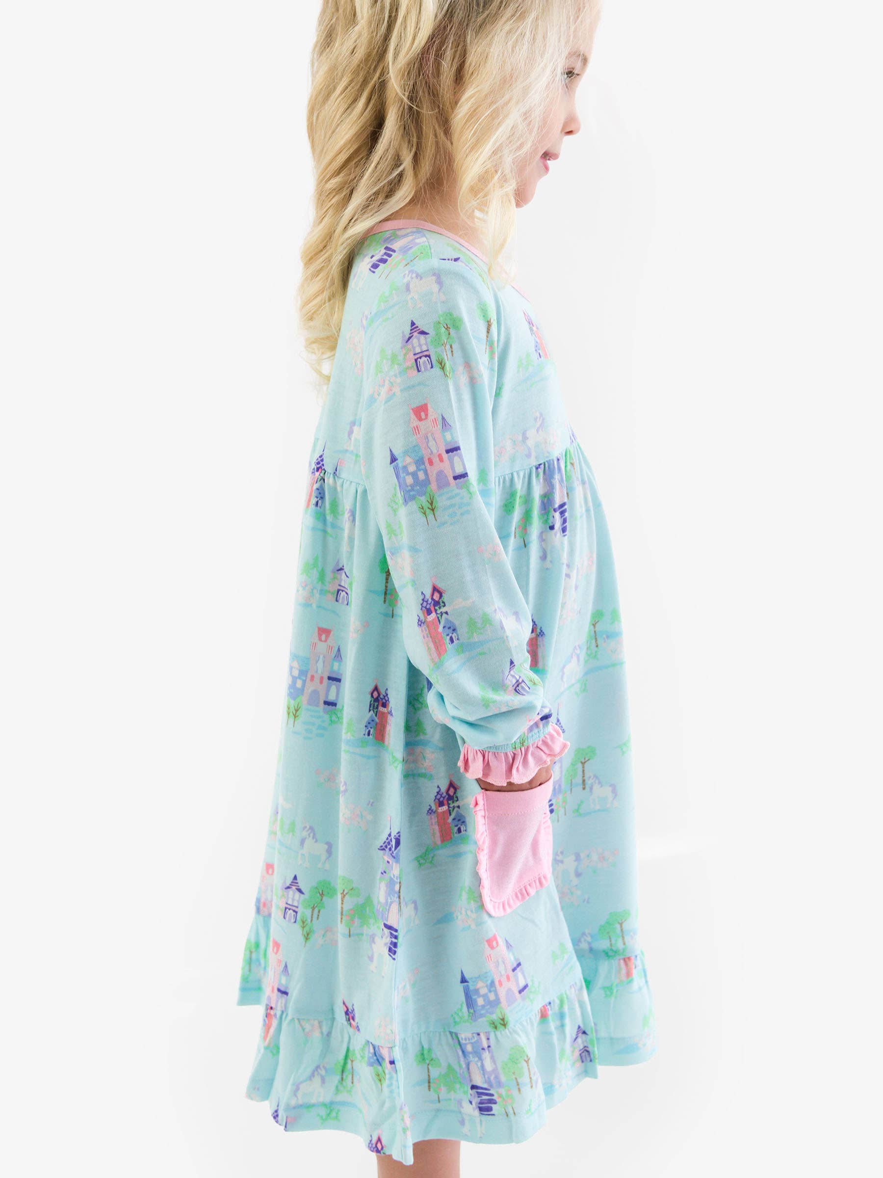 SoftSnooze™ Girls Once Upon a Castle Long Sleeve Ruffle Pocket Pajama Night Gown