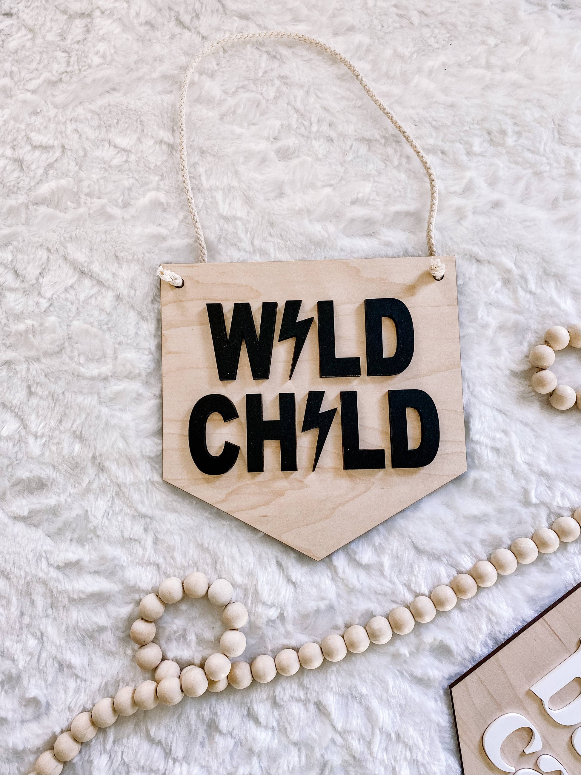 Wild Child Lightning Bolt Nursery Pennant Wall Sign